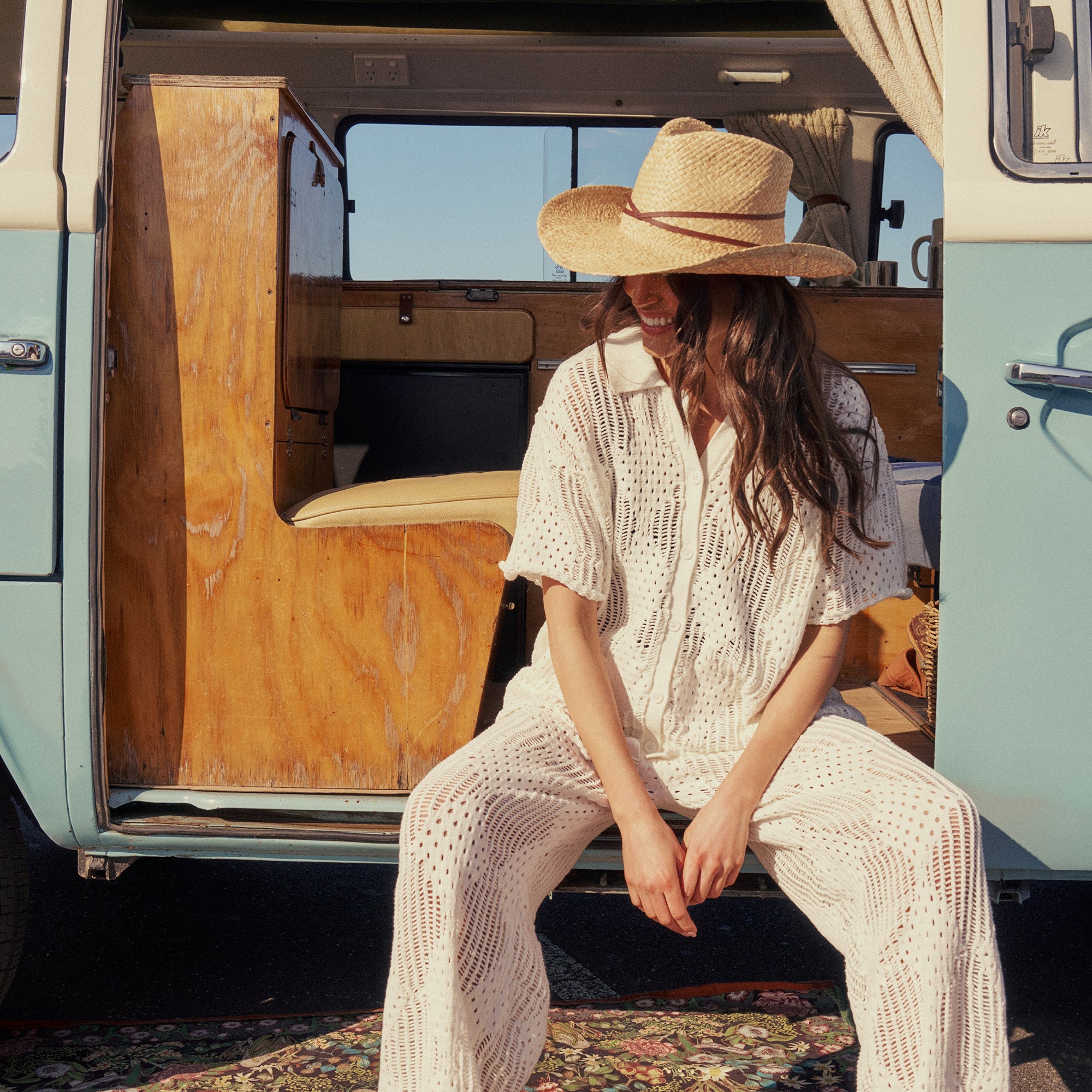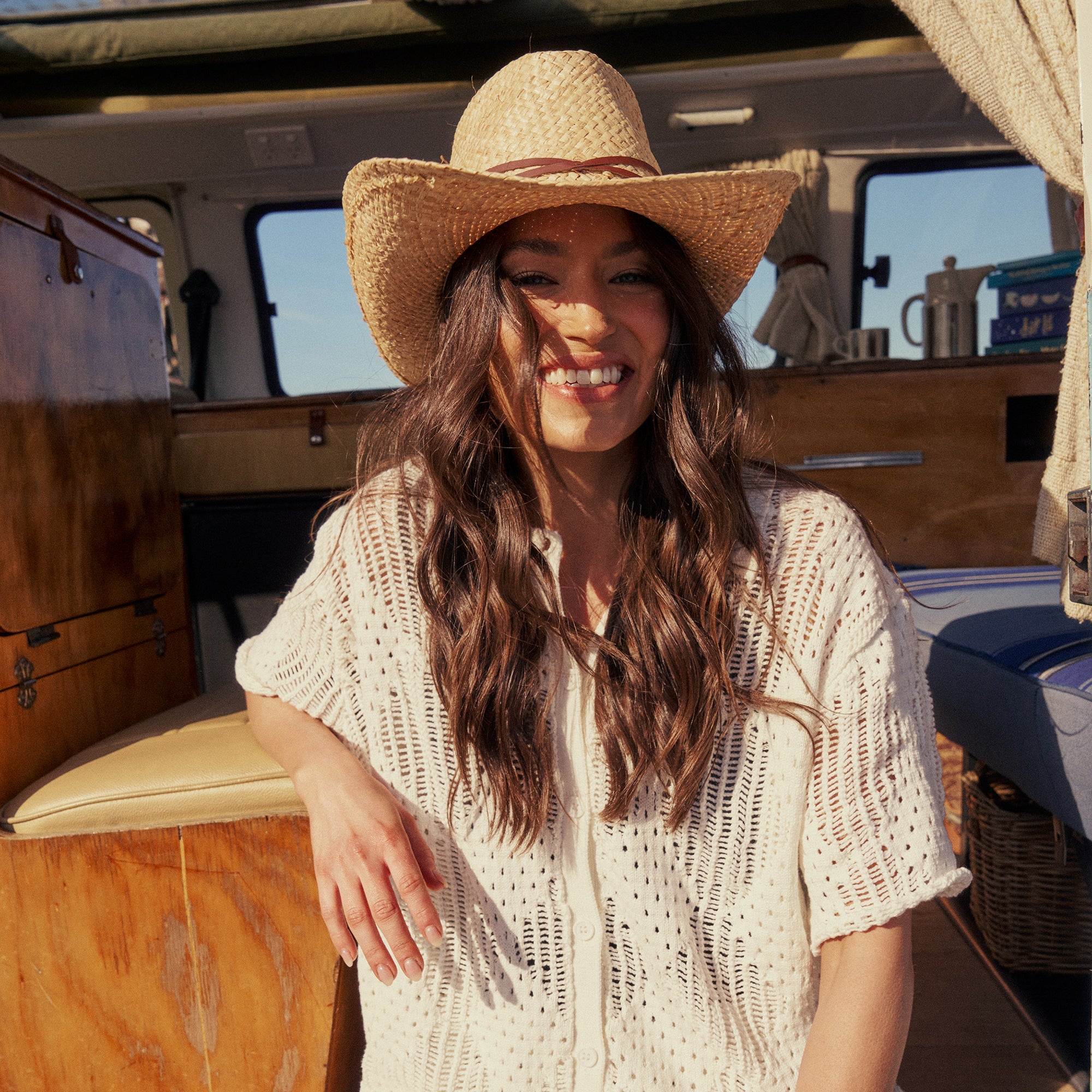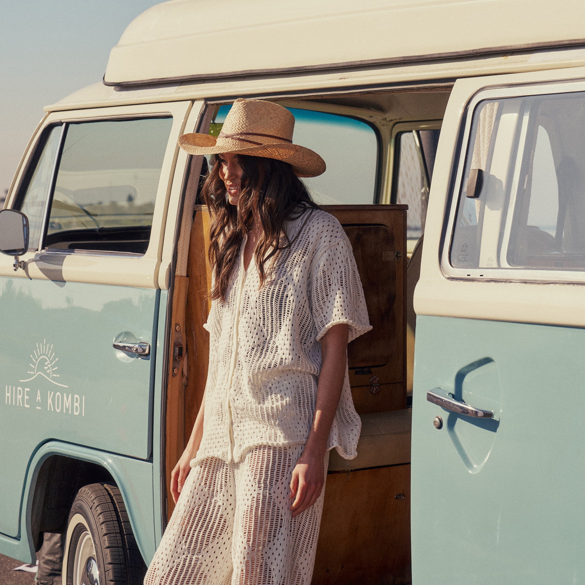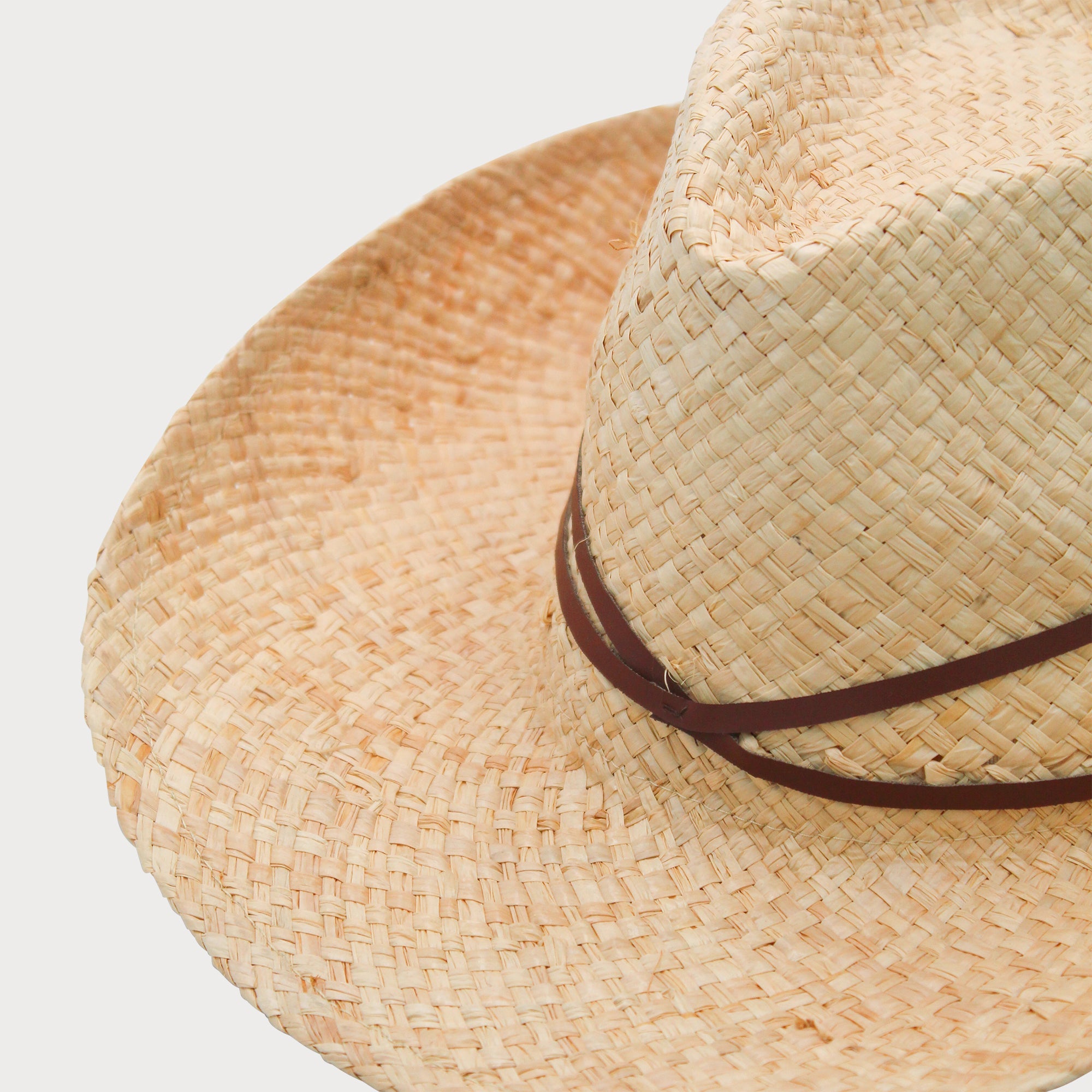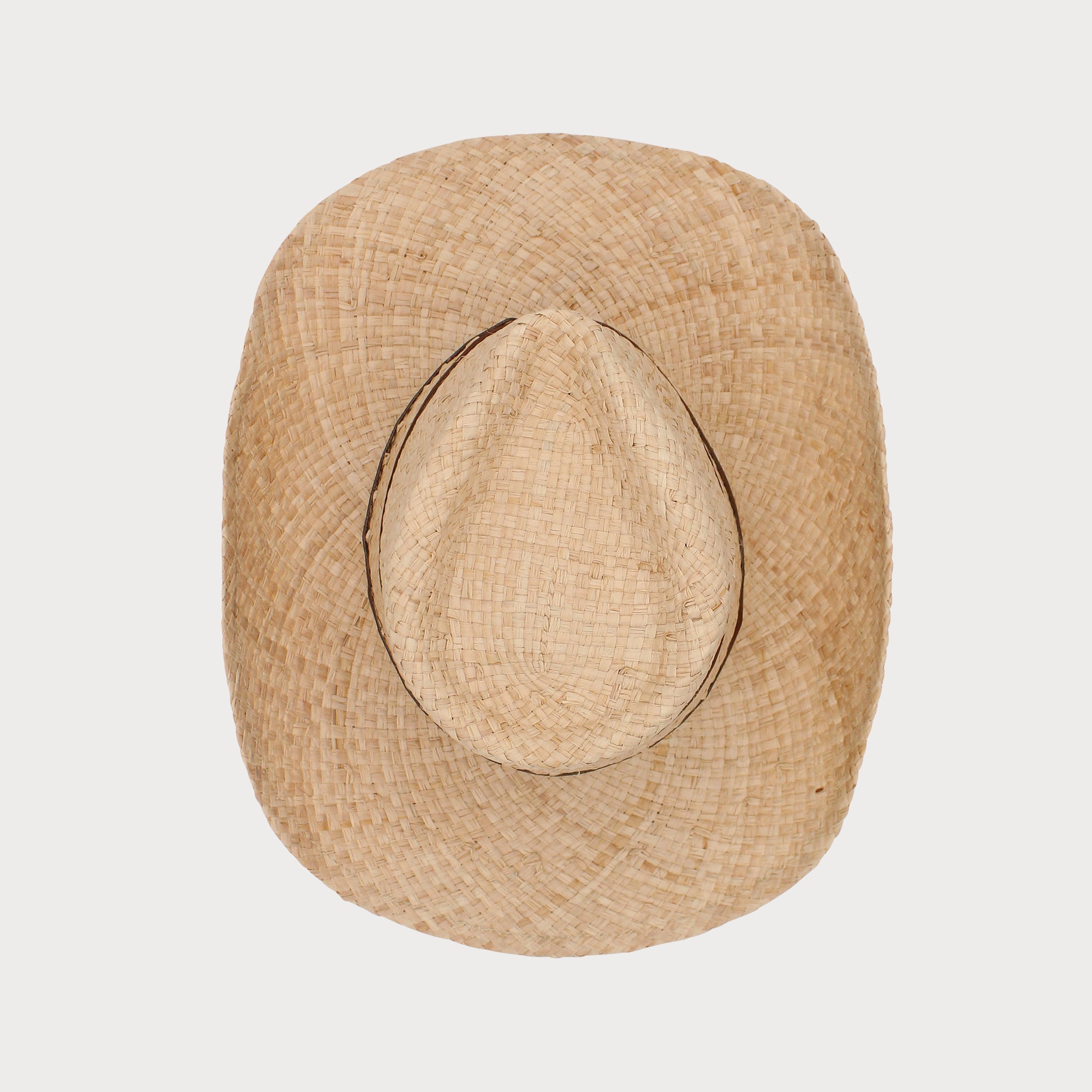 The Ace Of Something Caspian Cowboy Hat in Natural is a chic style, perfect for everyday wear, or an unforgettable adventure. The cowboy brim ensures warm weather can be enjoyed in comfortable shade, while the elegant trim adds a striking contrast that highlights the shape of the crown. Includes a bendable wire around the edge of the brim to help styling, and to ensure the shape is maintained, even after long wear. The thick, woven raffia, ensures comfortable and durable wear during endless sessions of stylish relaxation and exploration. Finished in our Melbourne Studio.