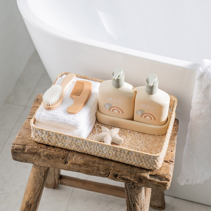 Once softened in water, this sponge provides a very light and delicate cleanse when used on the skin. The porous texture also helps your al.ive body baby Hair & Body Wash to lather, creating a luxurious foam with just a single pump of wash.