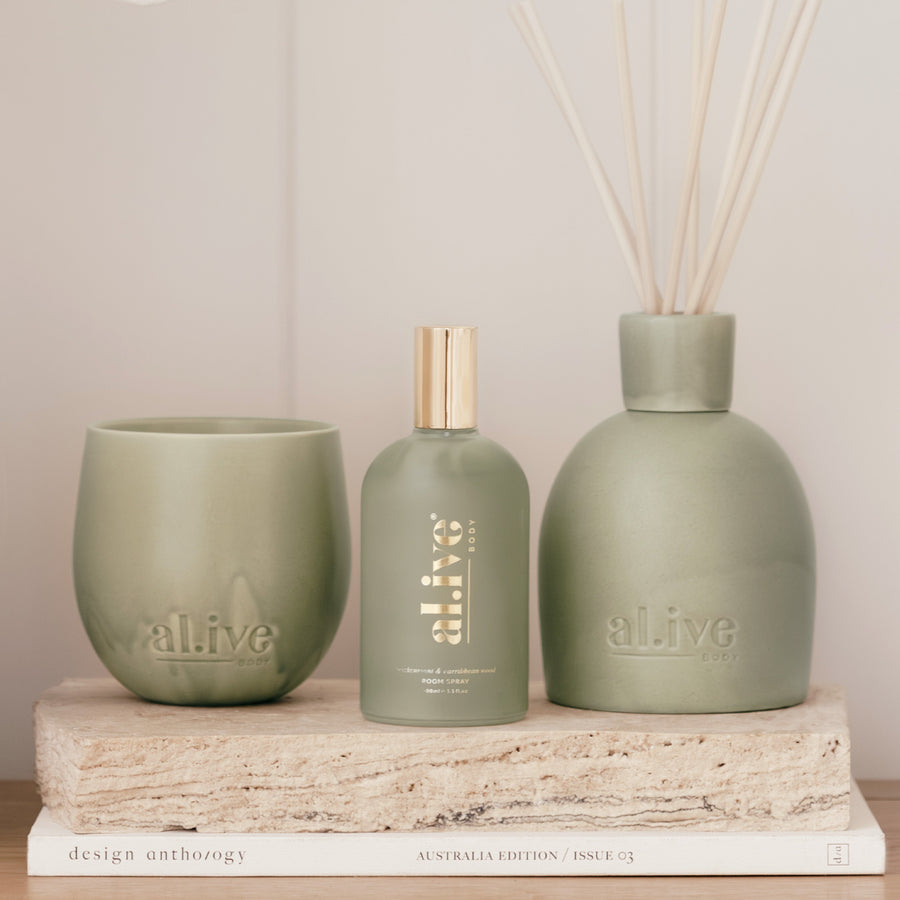 The al.ive body Home Fragrance Collection has been developed to help our homes possess a sense of calm and ease, and do so with their gentle organic shapes and scents that evoke our natural environment.