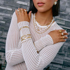 Bold yet refined, the beautiful Hariette Bracelet is the ultimate classy statement piece! Featuring a collection of unique freshwater pearls and a gorgeous golden bead, this one-of-a-kind jewel is perfect for gifting or elevating your evening bracelet stack.