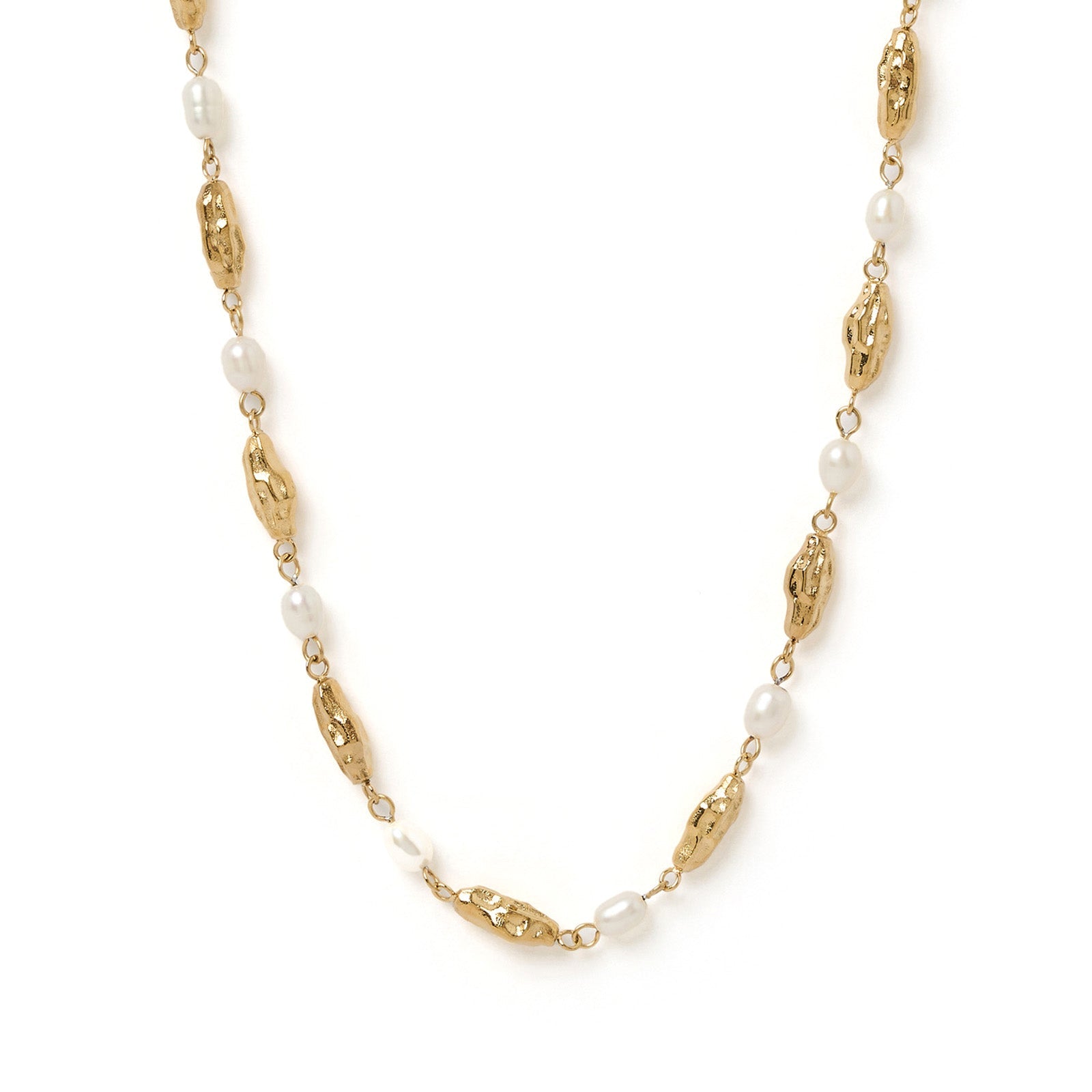 With the perfect contrast of cool crushed gold and classic freshwater pearls, our Mimi Necklace is the perfect piece to elevate a glamorous look. Stack it with gold or pearl, or let it make it owns elegant statement, either way Mimi is the dream piece!