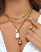 Statement sophistication is here with the Victoria Necklace, an eye-catching pearl piece ready to turn heads. Featuring a vintage-inspired chain, a freshwater pearl and gorgeous golden bead, Victoria is an utterly regal and timeless necklace sure to elevate your outfit!