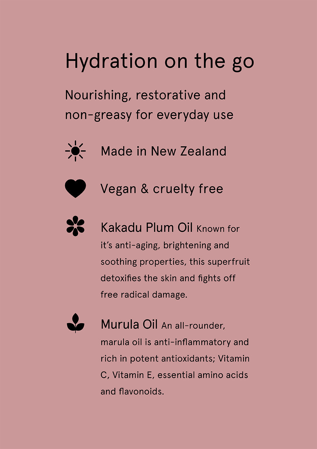 Pamper your hands with Kakadu Plum Oil and Marula Oil. Perfumed with rose blush, geranium, violet and jasmine petals