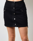 The Athena skirt. This utilitarian A-line mini skirt features panelled seams, side-facing pockets and a button down centre front. The Athena skirt is a timeless style, The perfect off-duty piece.