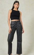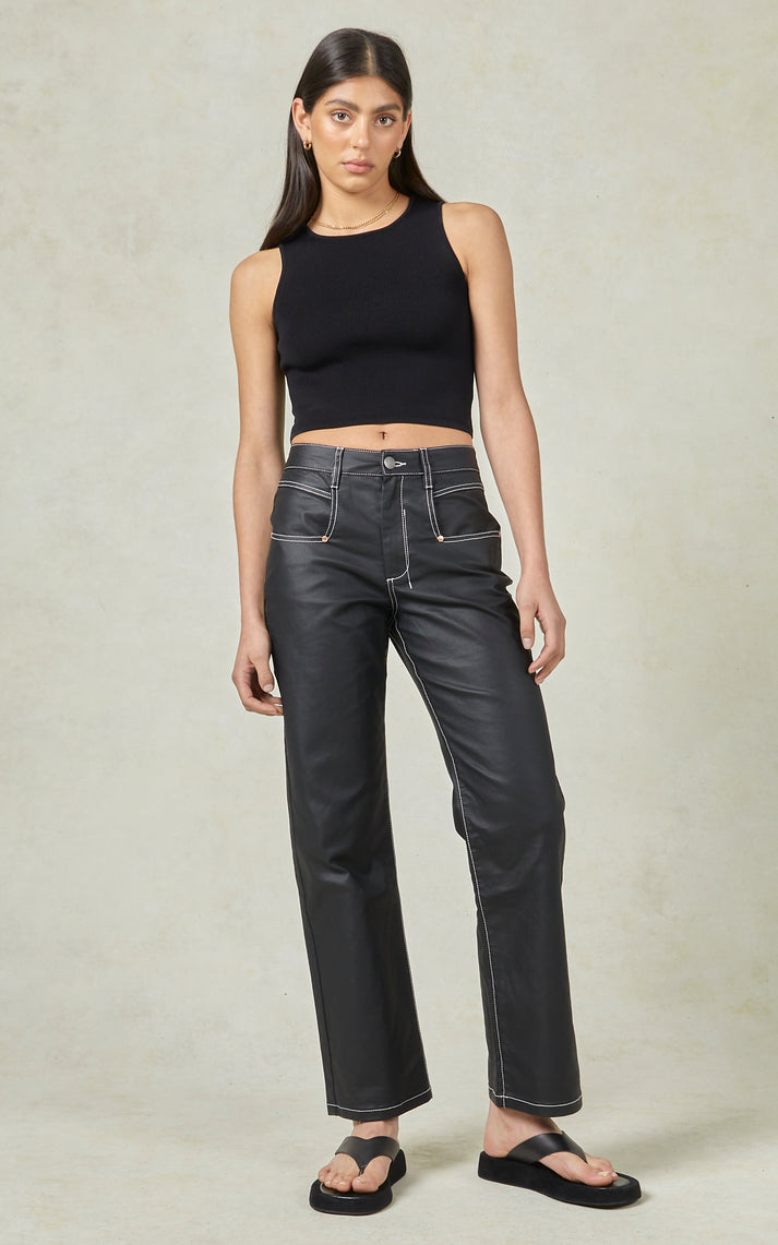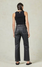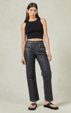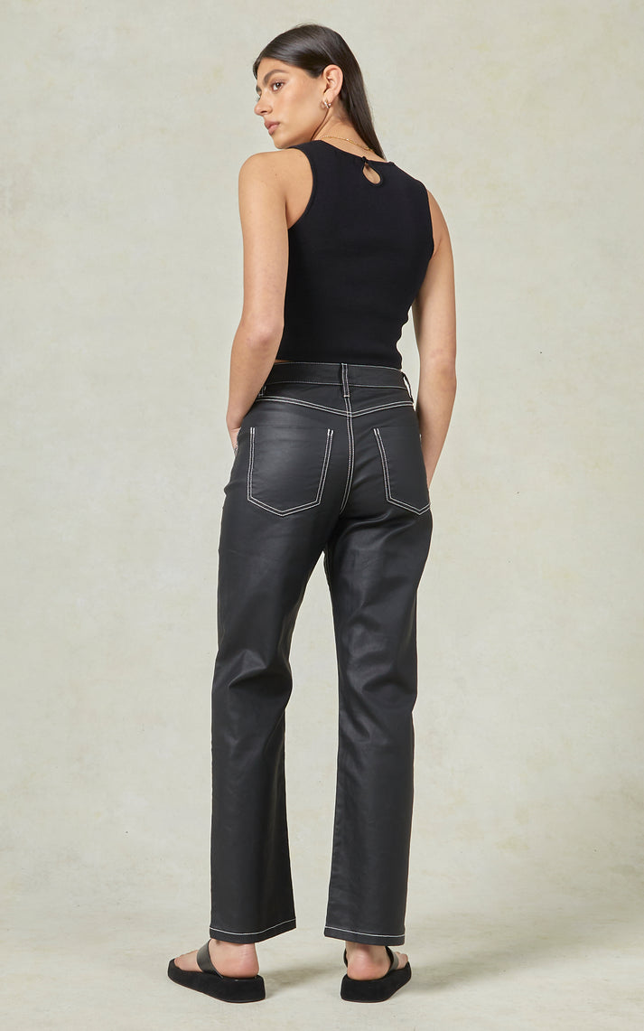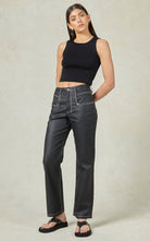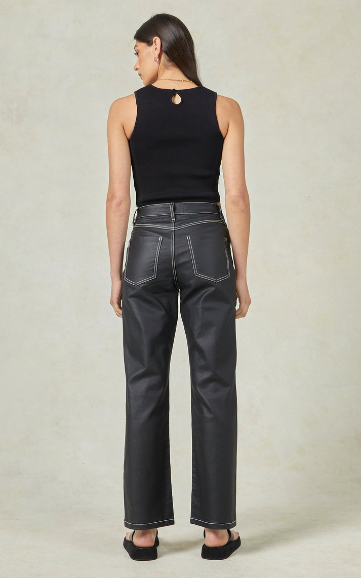 This pair is cut from luxurious coated denim with a slight stretch for comfort. The Mid-Waisted wide-leg silhouette is a terrific way to harness the 70's denim era. The kind of style you could dress up for the evening or down for the daytime.
