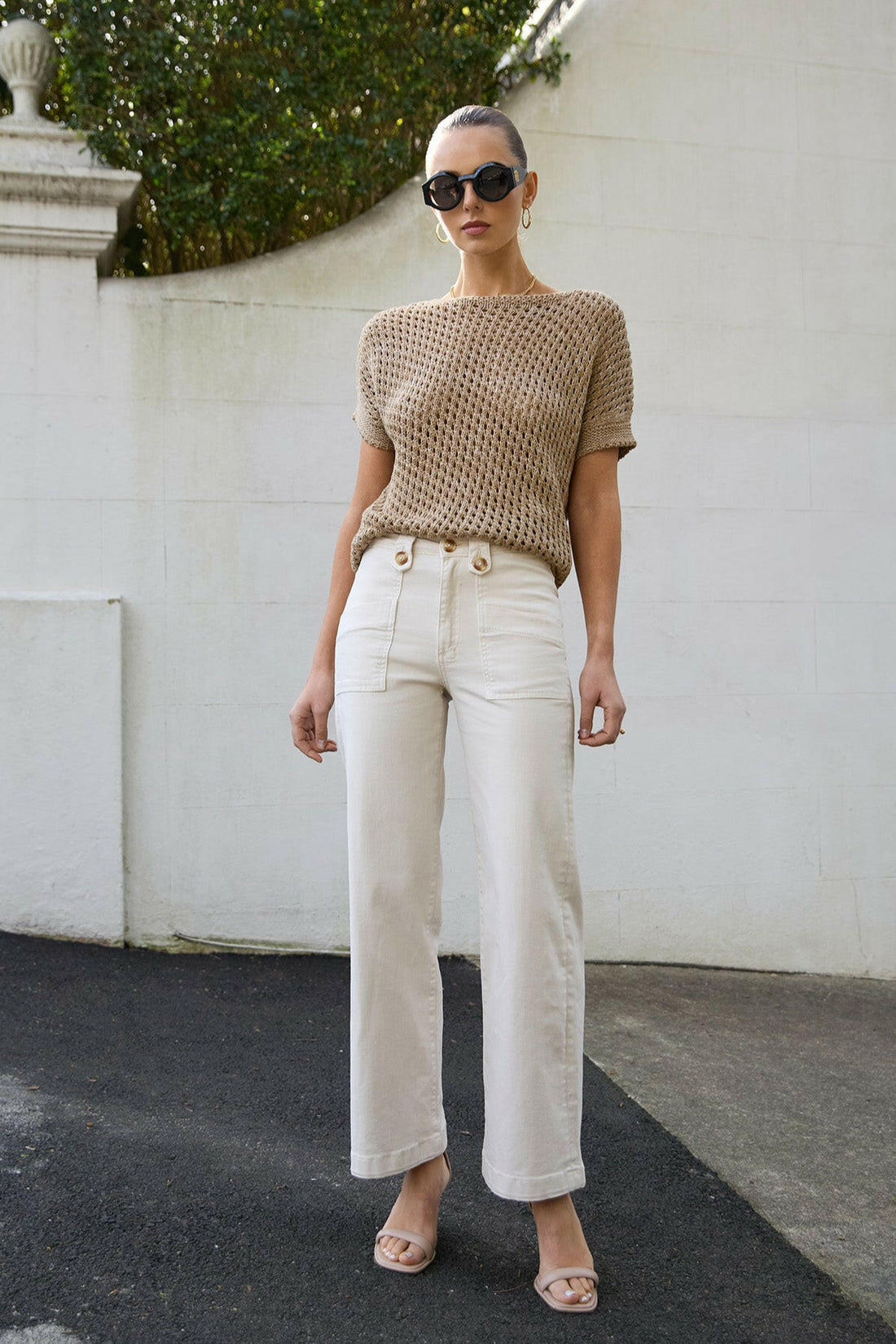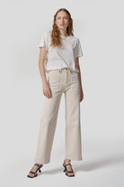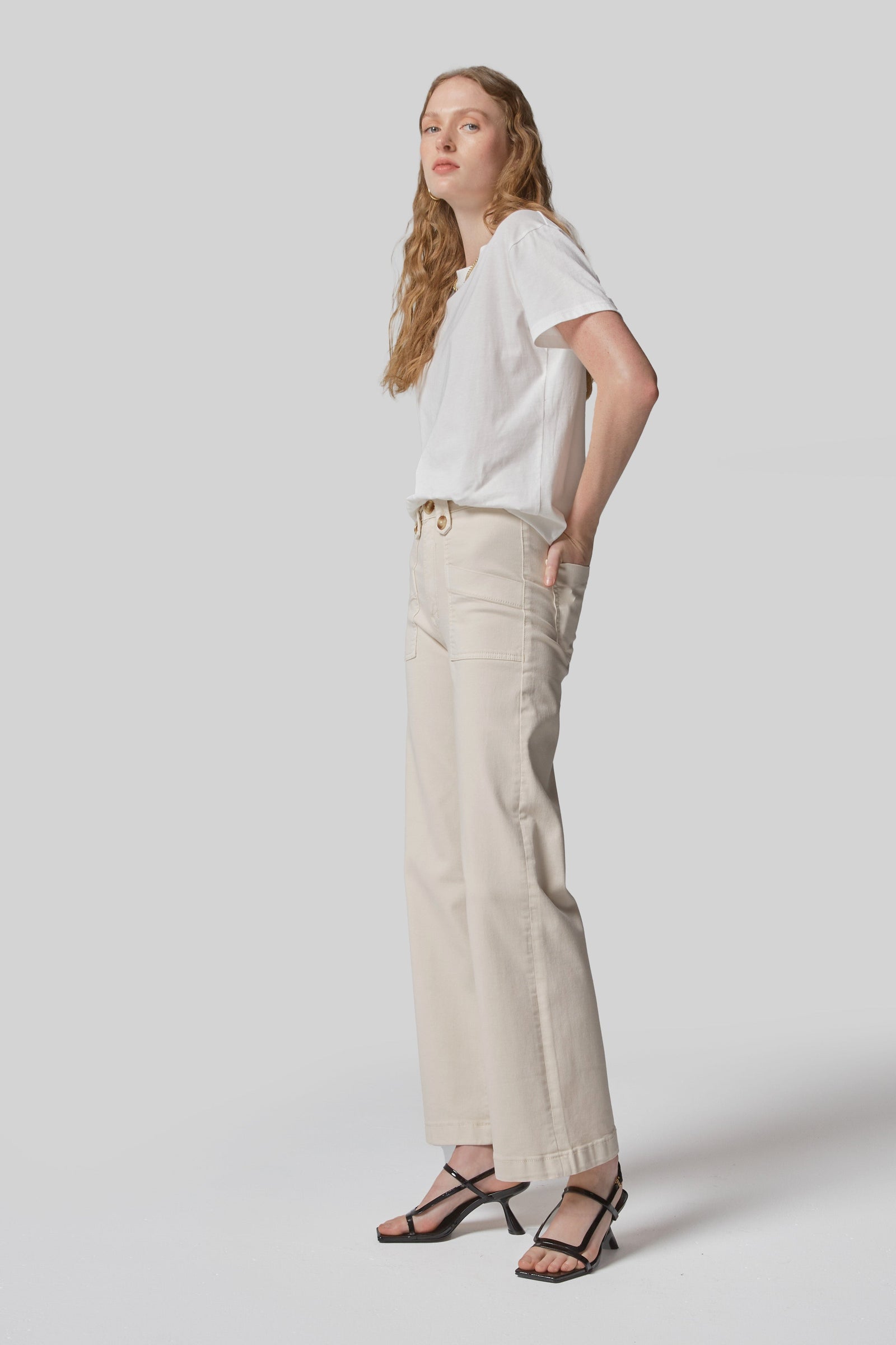 Our signature Tailored Trousers designed as a jean, Carrie are high-waisted, fitted silhouette in wide-straight-leg that sit just below the ankle. Crafted in Stretch Denim.