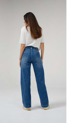These are high-waisted, relaxed silhouettes in wide-straight-leg that sit just