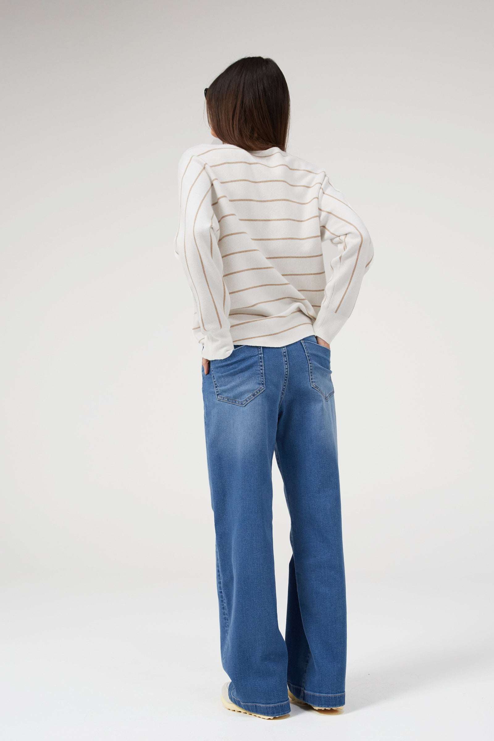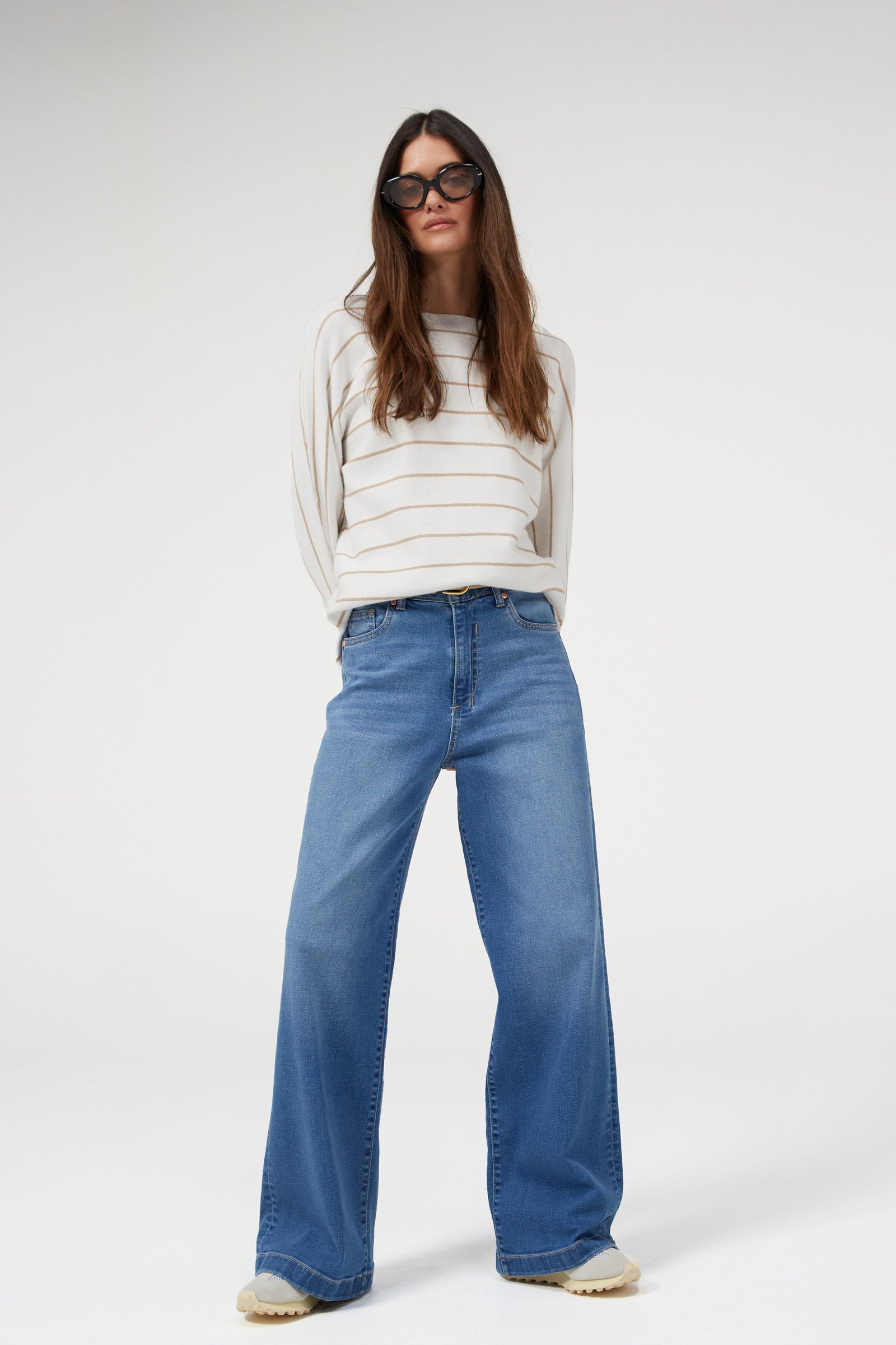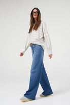 Darrie is a baggy Jeans style that is slouchier in the hip and thigh area creating a flowy look that pools at the hem. Designed wide straight leg in comfort stretch denim.
