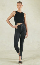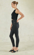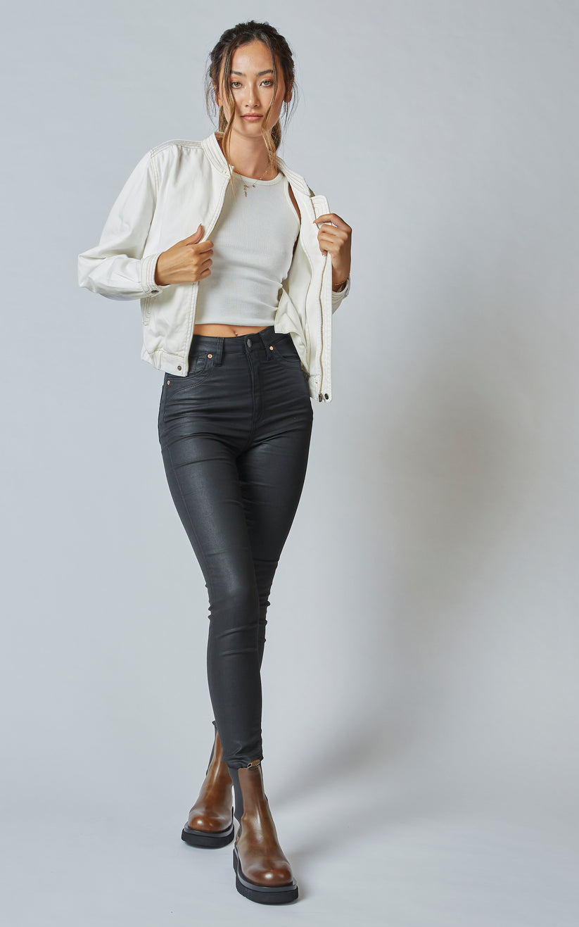 Our DCD High Coated Jeans are crafted from unique, breathable denim specially coated for a luxurious finish. These high-rise jeans boast impressive stretch capabilities and excellent recovery, making them ideal for any occasion. Dress them up with heels or keep them casual with sneakers. Plus, you can rest easy knowing that all of our denim is Oeko Tex 100 Certified, ensuring it's free from harmful chemicals and dyes.