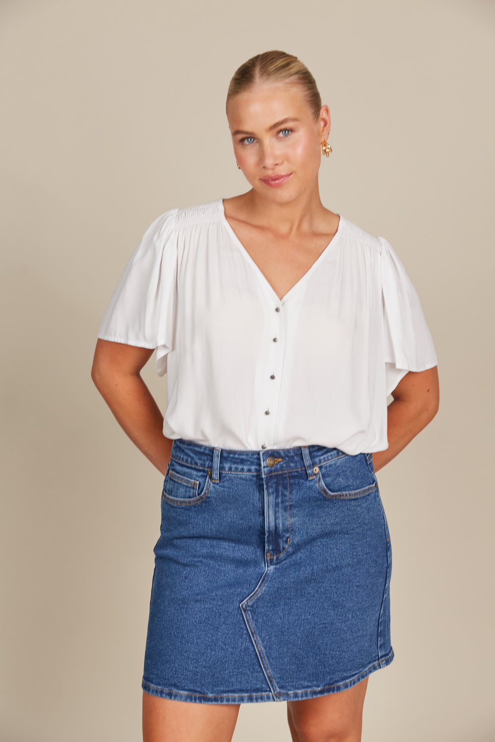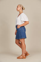 If you prefer skirts to pants, the Margot Denim Skirt is your go-to for laid-back days. This denim skirt features a mid-rise fit, button and zipper fly, and classic five-pocket styling. Falling to a comfortable mid-thigh length, it has the right amount of stretch for all-day comfort. Whether you pair it with a tank, t-shirt, button-down, or blouse, you'll always look chic and stylish!