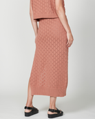 The Palms Knit Skirt in Tan is ideal for those carefree summer days when you just want to slip something on over a swimsuit. This cotton knitted midi skirt boasts a straight fit, an elasticated waistband, and finishes with a ribbed hem. You can wear it over your swimwear or pair it with the matching Palms Knit top for a chic look.
