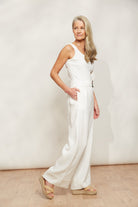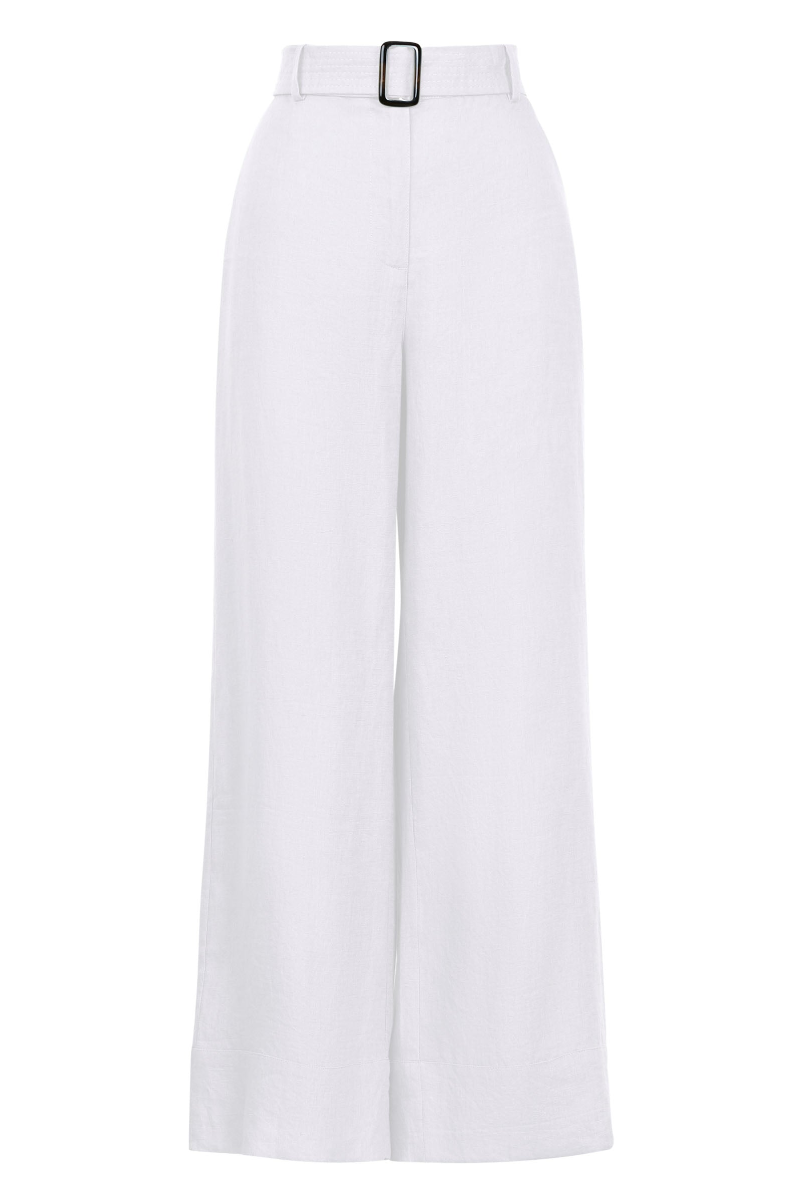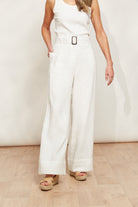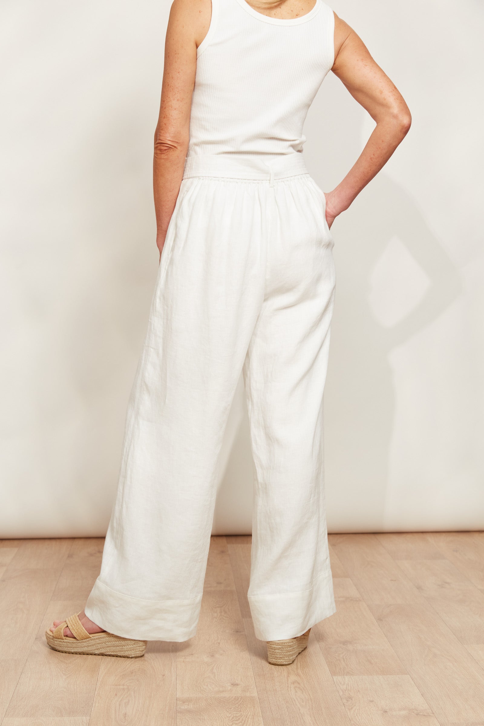 Made from luxurious linen with a wide-leg profile, the Halcyon Pant exudes timeless sophistication. The half-elastic waist guarantees a comfortable fit, while the high waist and self-fabric belt add a touch of structure to your silhouette. Style them with a tank and a blazer for a polished office look, or keep it casual with a tshirt and sneakers for a laid-back afternoon picnic.