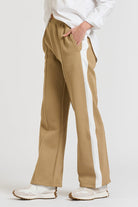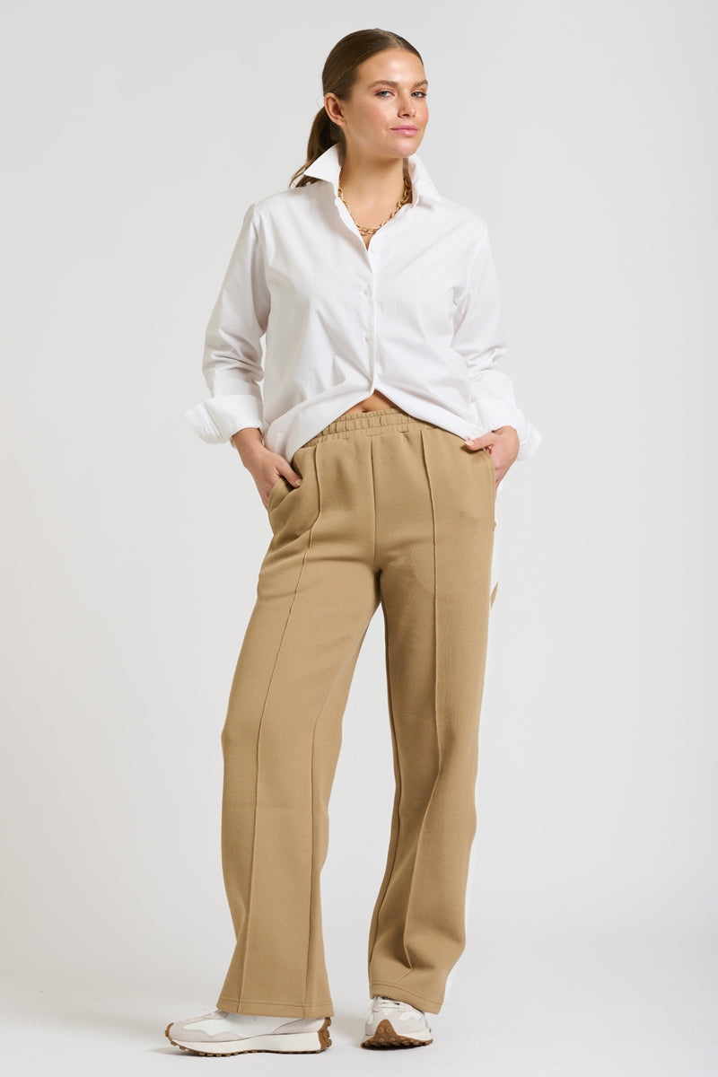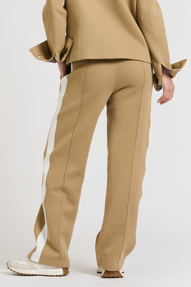 Introducing our Lola pant, an elegant and elevated interpretation of the classic 70s sport style. Crafted from luxe technical scuba fabric that will not stretch and is so comfortable to wear. Featuring a mid- rise fully elasticised waist, side pockets & flattering wide leg styling finished with centre seams and stripe at sides.