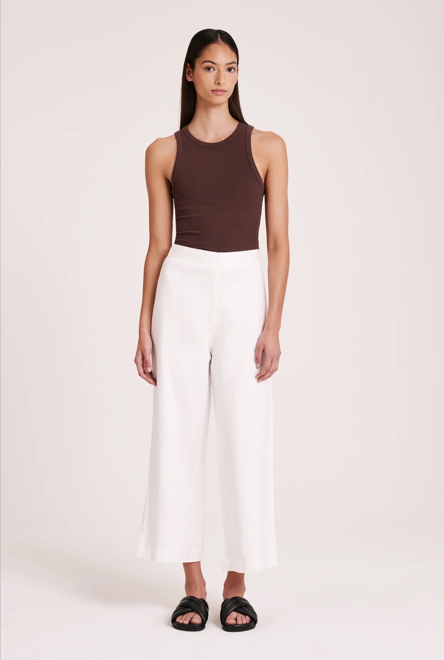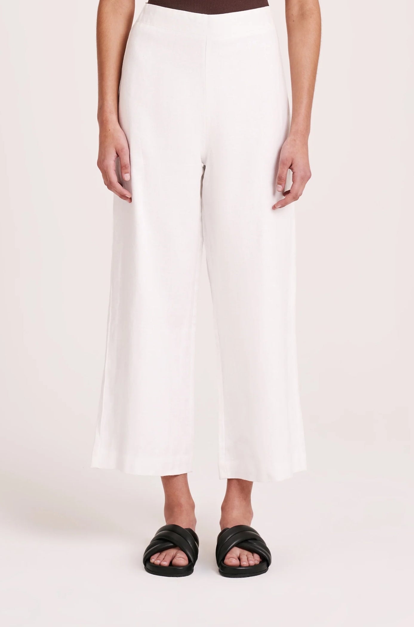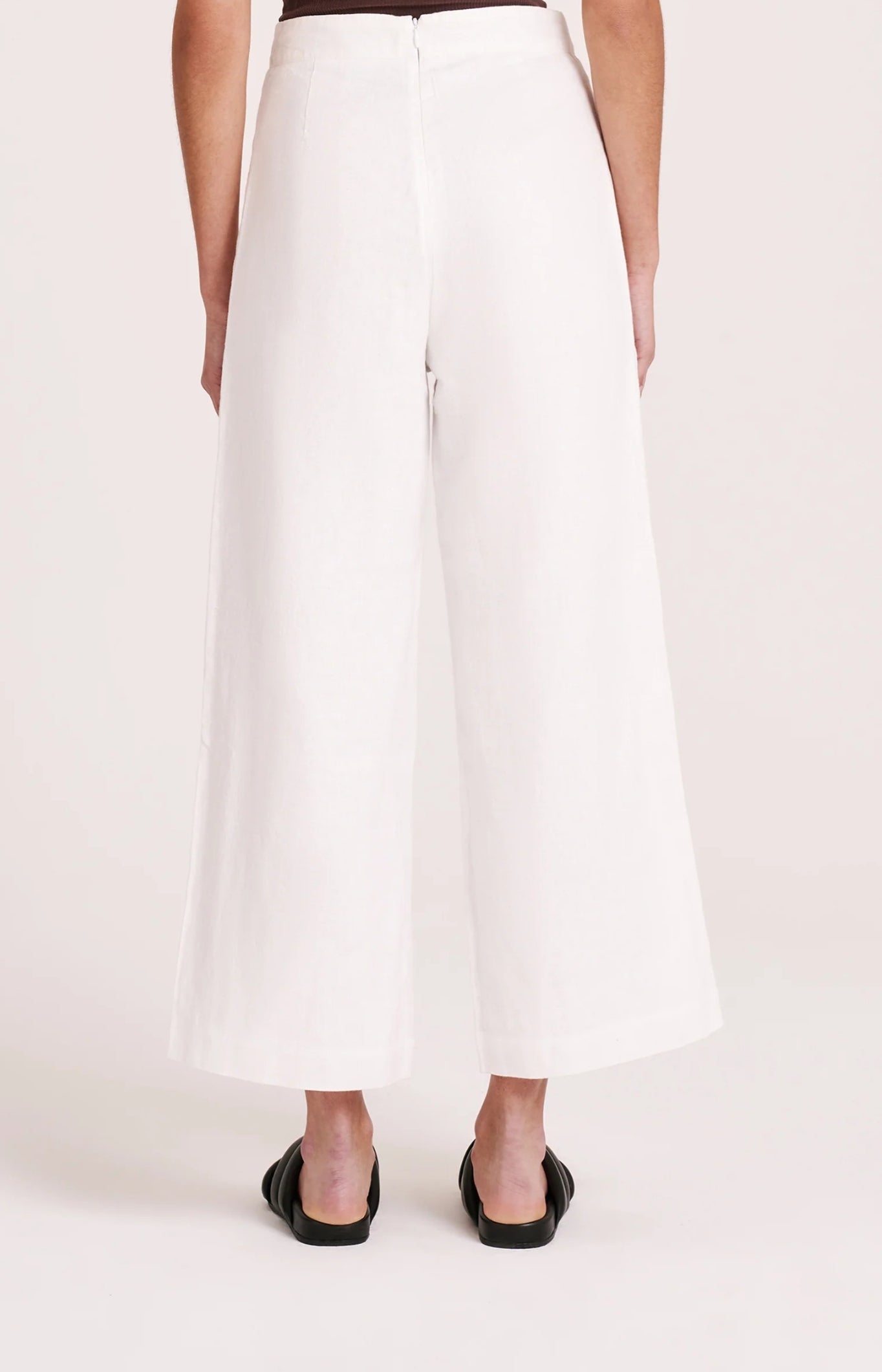 The Thilda Linen Culotte is made 100% linen which has been washed for a soft, breathable hand feel. The silhouette is a classic mid rise with wide tailored leg and cropped length. Features include centre back zipper opening.