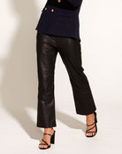 Underground 100% Leather High Waist Cropped Straight Leg Pant - Black