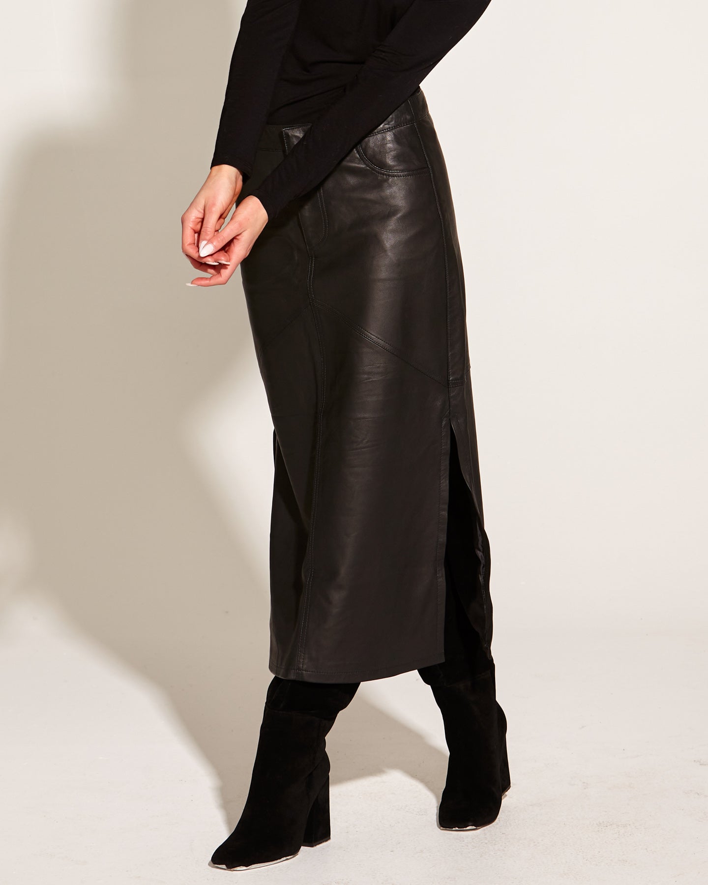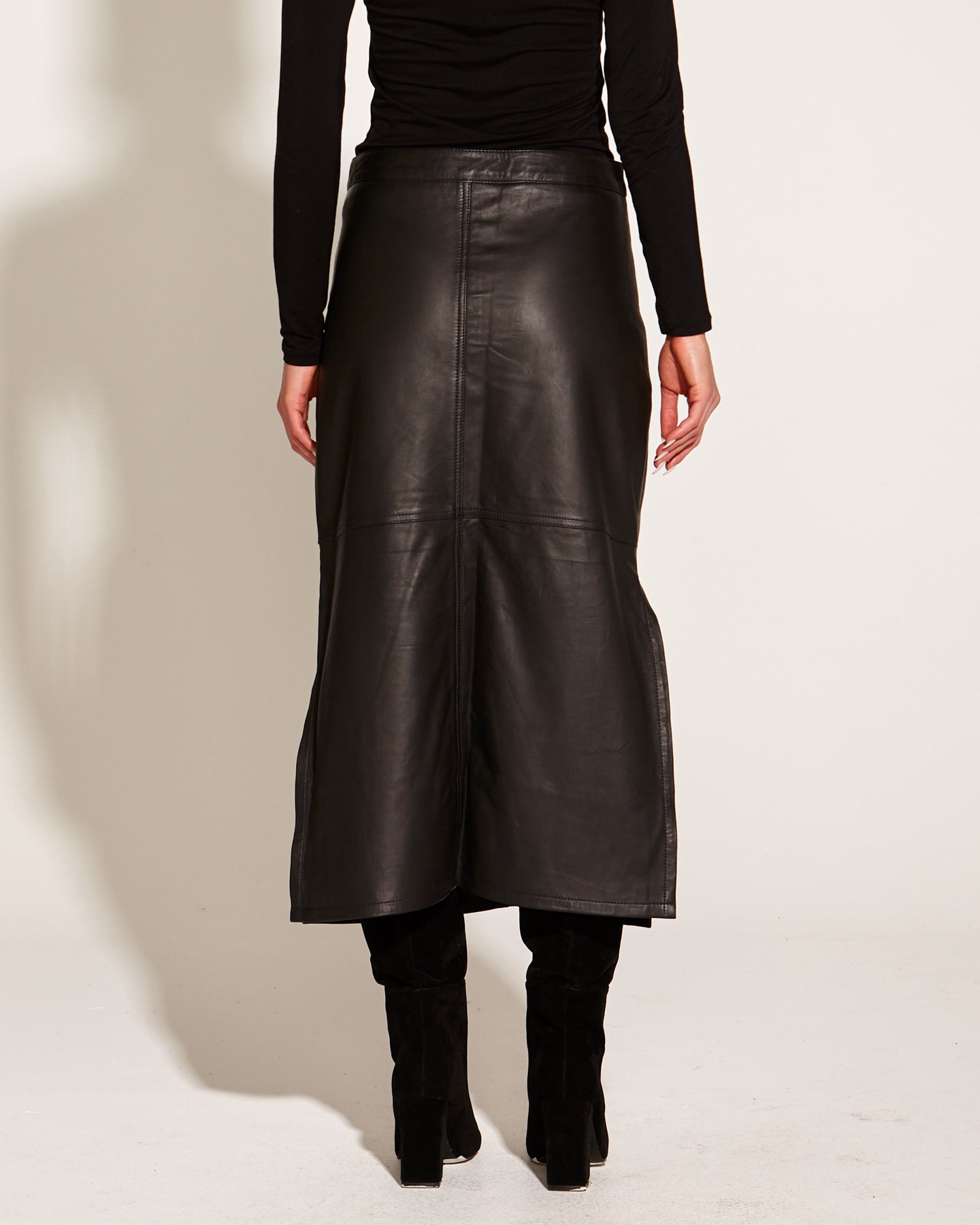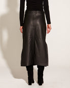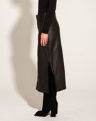Underground 100% Leather High Waist Straight Midi Skirt - Black