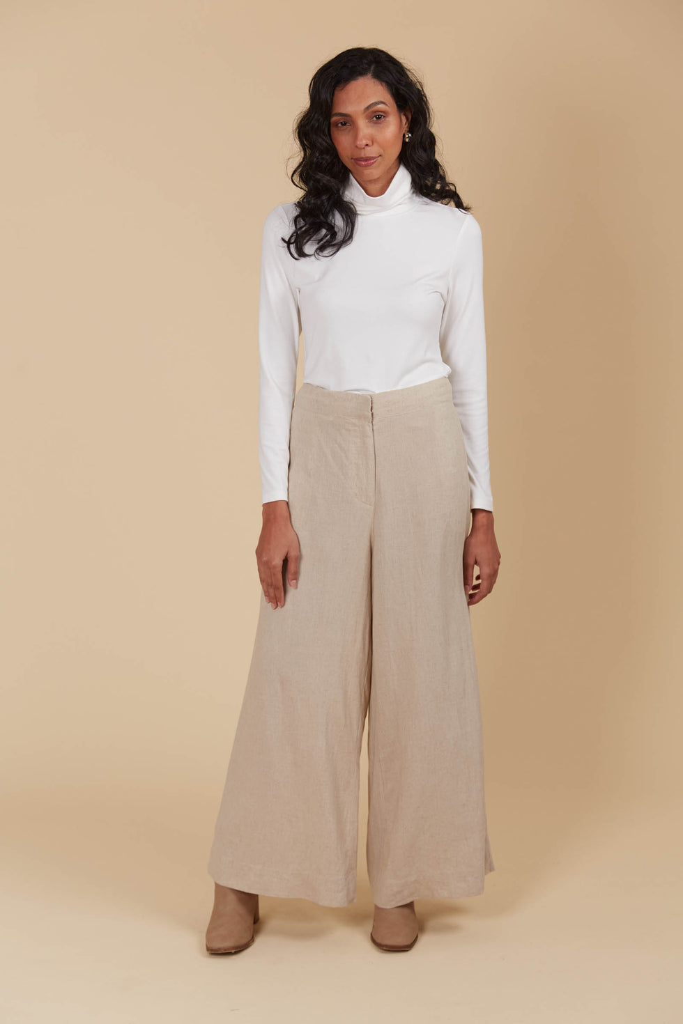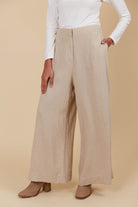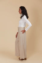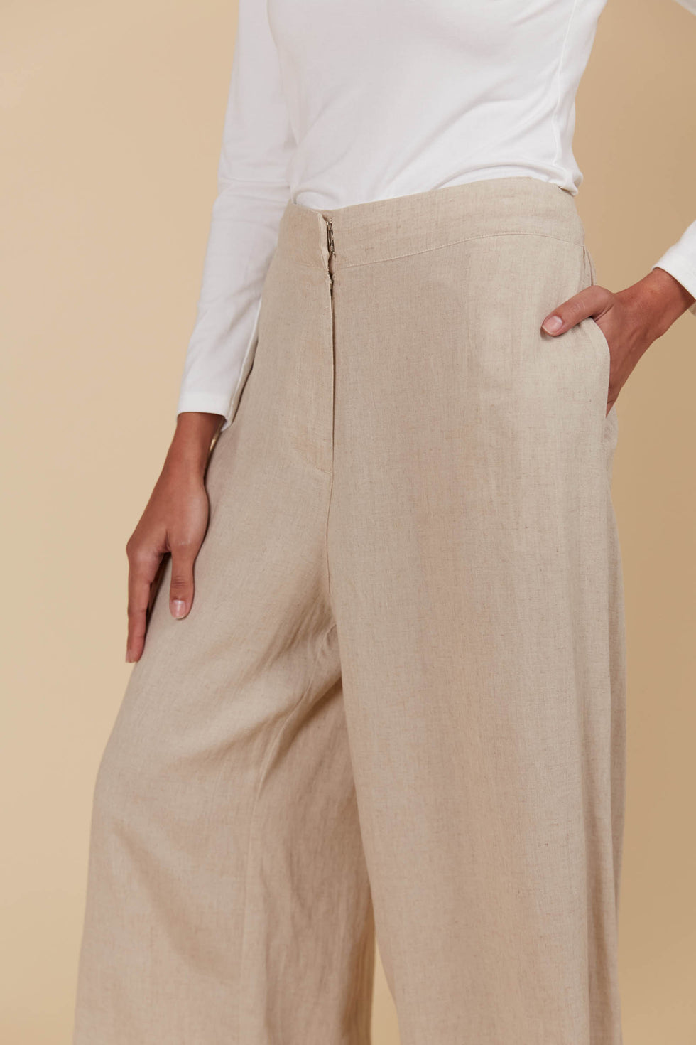 The Venus Pant offers a tailored touch to your everyday look. These pants are expertly crafted from a quality linen blend, providing a flattering and timeless fit. A concealed hook and zip closure and a half-elastic waist offer the perfect combination of comfort and style. The full-length design and wide leg create an elegant silhouette. Whether paired with a matching top or mixing seamlessly with other wardrobe staples, these pants are a chic and versatile addition to any outfit.