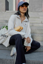 The Lonny Oversized Half Zip Sweat is your versatile staple- perfect for lazy mornings at home, brisk dog walks, or casual cafe catch-ups. Crafted from an organic cotton blend, its oversized fit, pockets in side seams and half zip keep you comfy for wherever the day takes you.