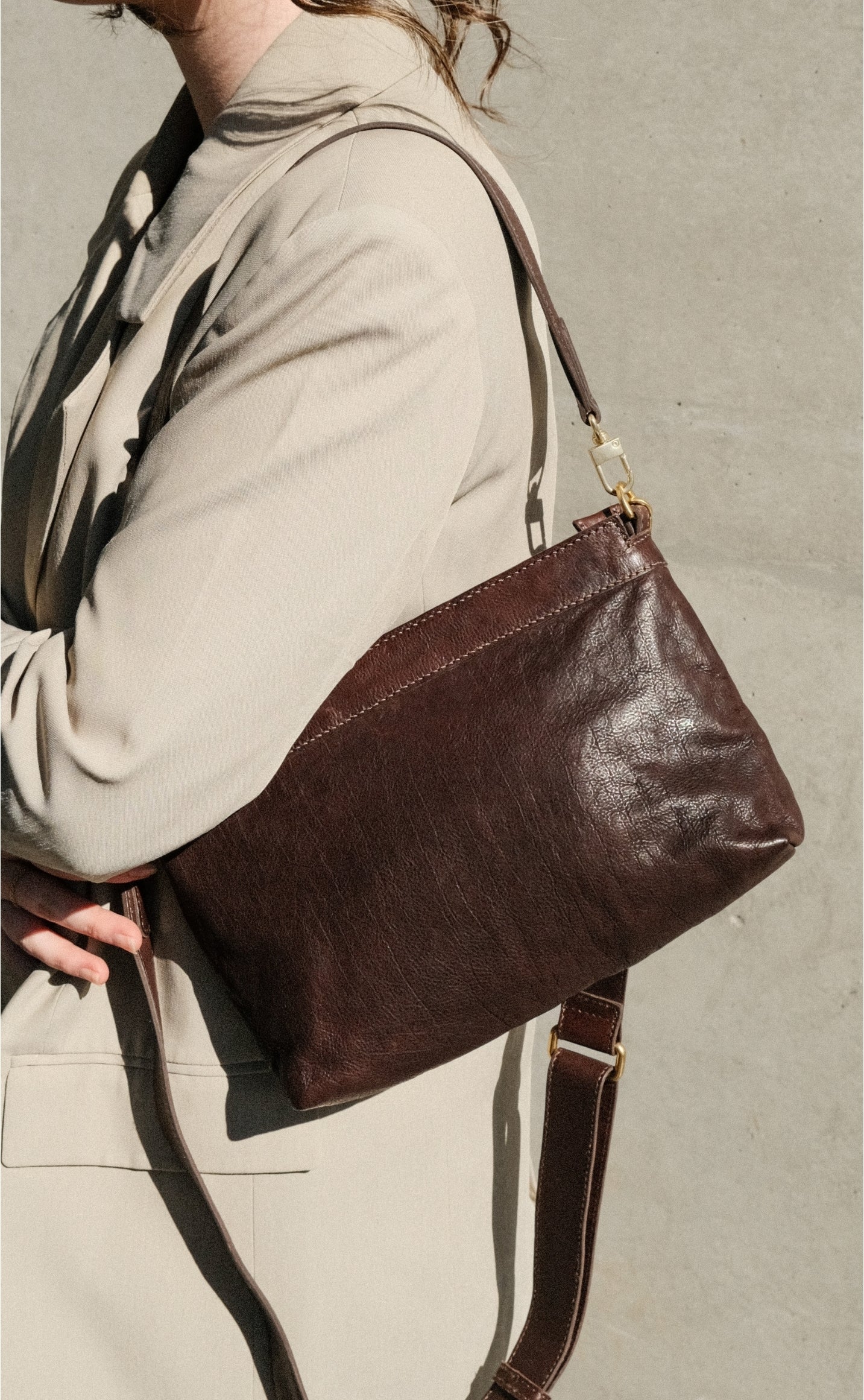 Please note that this product may vary in size and colour due to our natural means of production, including the use of vegetable, chrome-free dyes and tumble washing. This process allows for a softened texture, aged appearance, and occasionally, minor imperfections, resulting in a bag that is uniquely yours. We are in the process of phasing out our logo, and in the change over period there may be some bags that come with or without a logo.All leather products are designed in Australia and manufactured in India to the gold environmental standard of production sustainability, certified byThe Leather Working Group.
