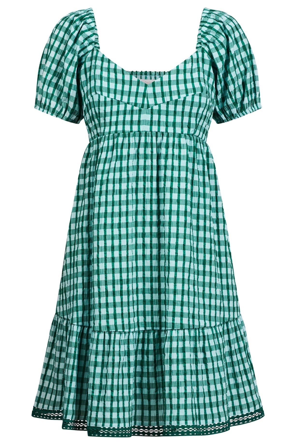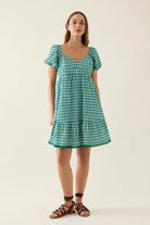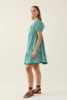 A charming and romantic mini dress designed for warm days. The Esther Mini Dress features puff sleeves, sweetheart neckline and gathered skirt tiers for an ultra-feminine look. The gingham option, texture and lace trims give it a nostalgic feel.