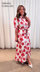 SHIRT DRESS WITH SHORT SLEEVE Oriental Red Floral
