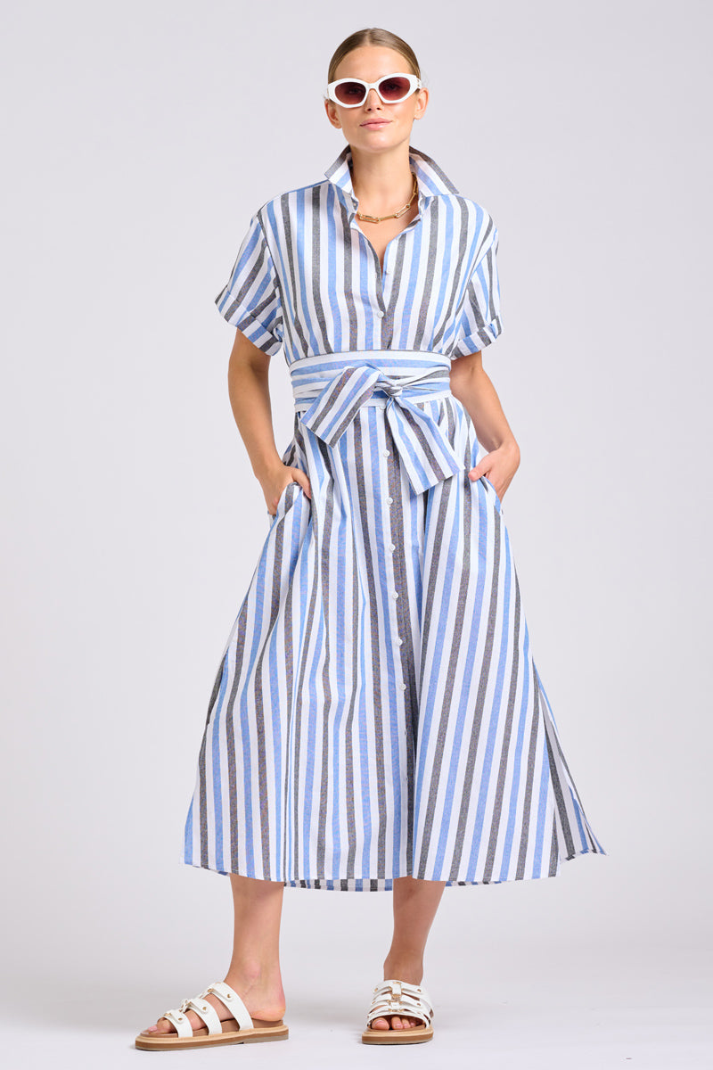 The Lucy Oversized Shirt Dress - Blue Stripes