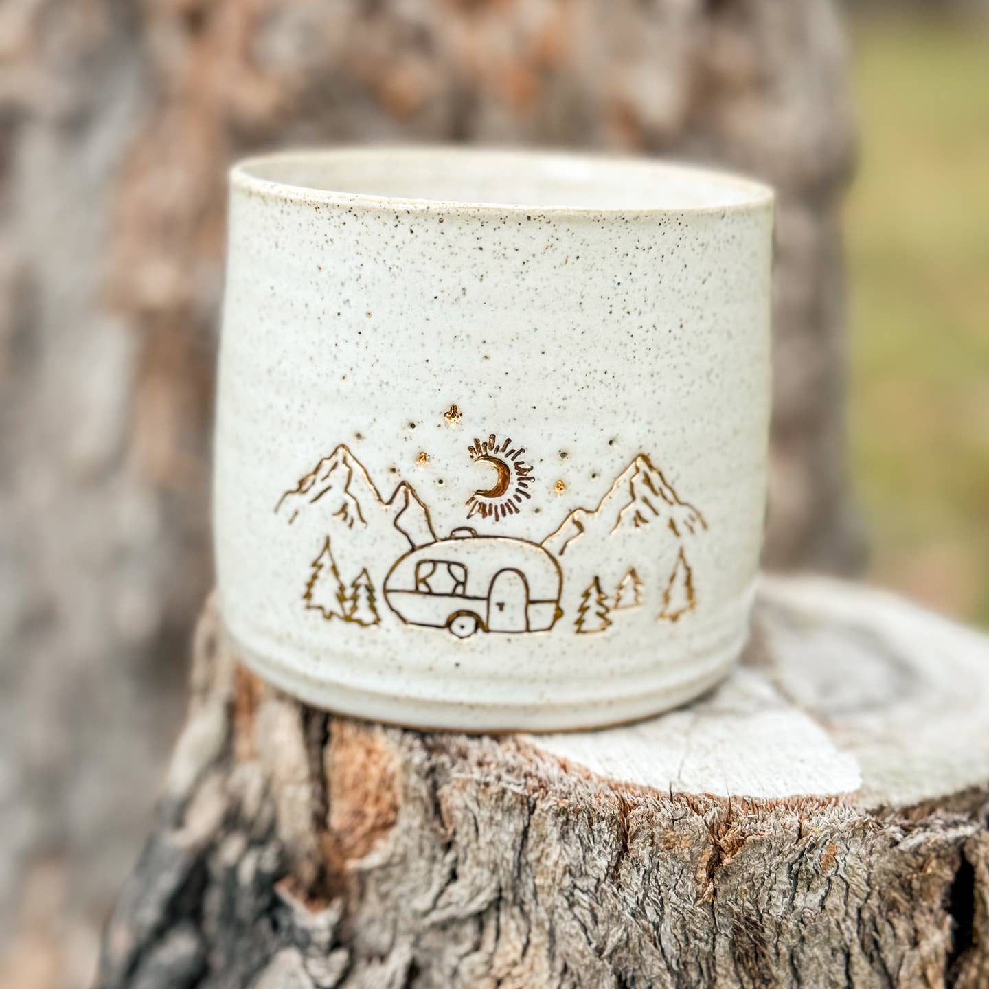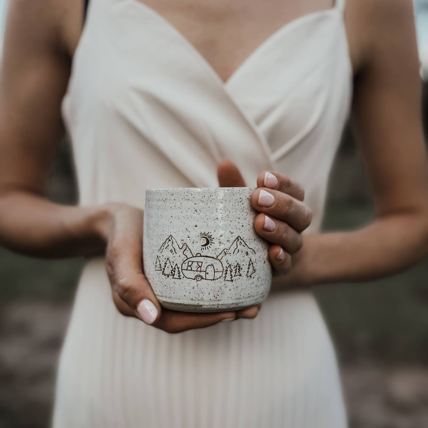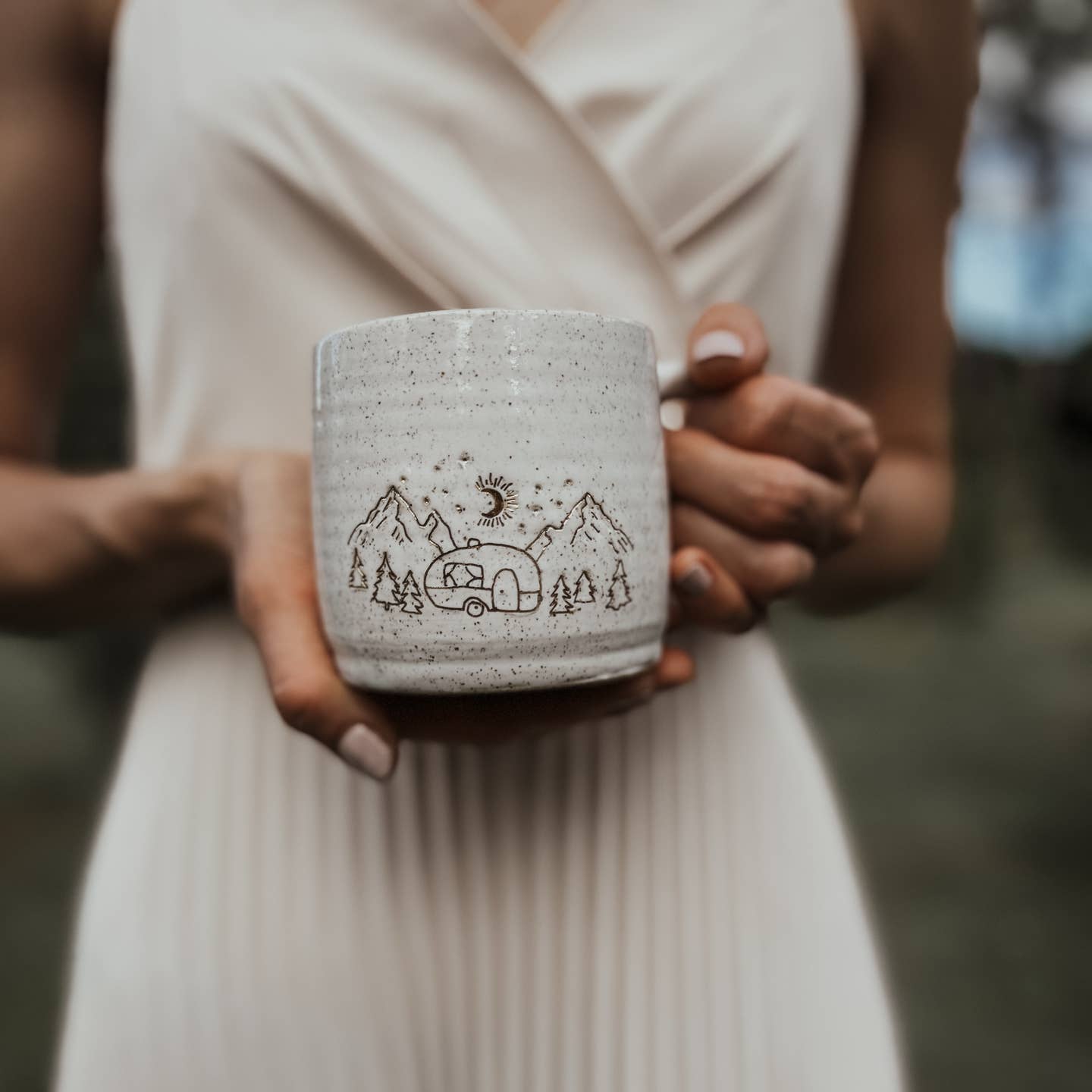This ceramic hug mug features a light speckled clay with white glaze and lined with real 22k gold lustre. Handmade in Australia. We take sustainability seriously: -Our handmade clay mugs are ethically created in small batches in Mount Tom, QLD -Our products are made with clay and quality glazes for a stunning finish you can enjoy for years to come. The mugs are approximately 8-9cm (high) x 8cm(width) +/-1cm . If you are purchasing more than one, please expect slight variations.