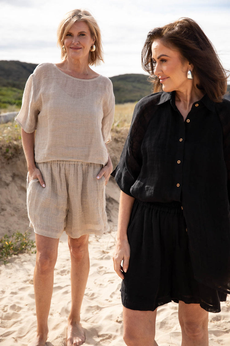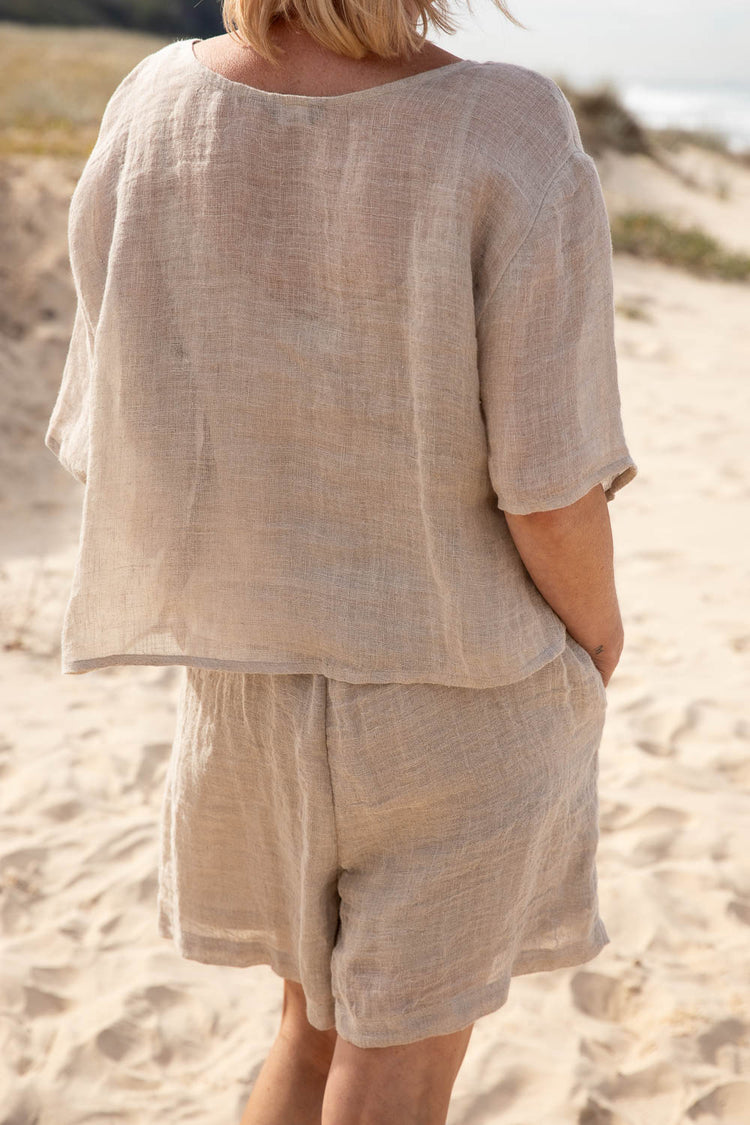 The Olivia Linen Top is a beautiful piece to layer over a slip dress or wear with the optional cotton undergarment and match with the Arana Pants. The sleeve falls just above the elbow and the hem is slightly cropped to the perfect length for layering. The beauty of the Olivia Linen Top is in its simplicity.
