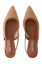 A relaxed summer flat with artisan detail. Features a rattan-look upper with a slingback design and cushioned sole for all-day wear.