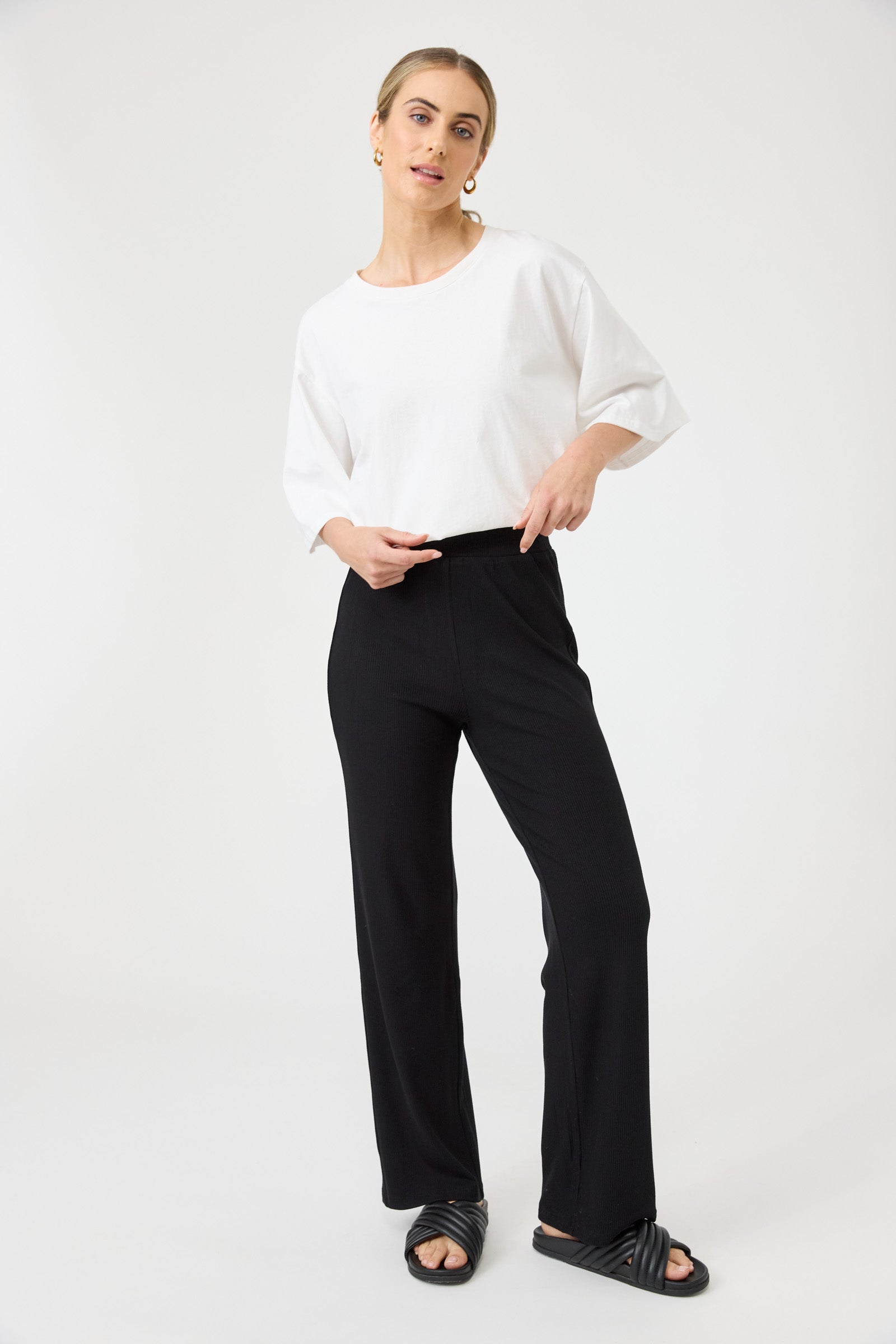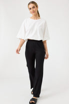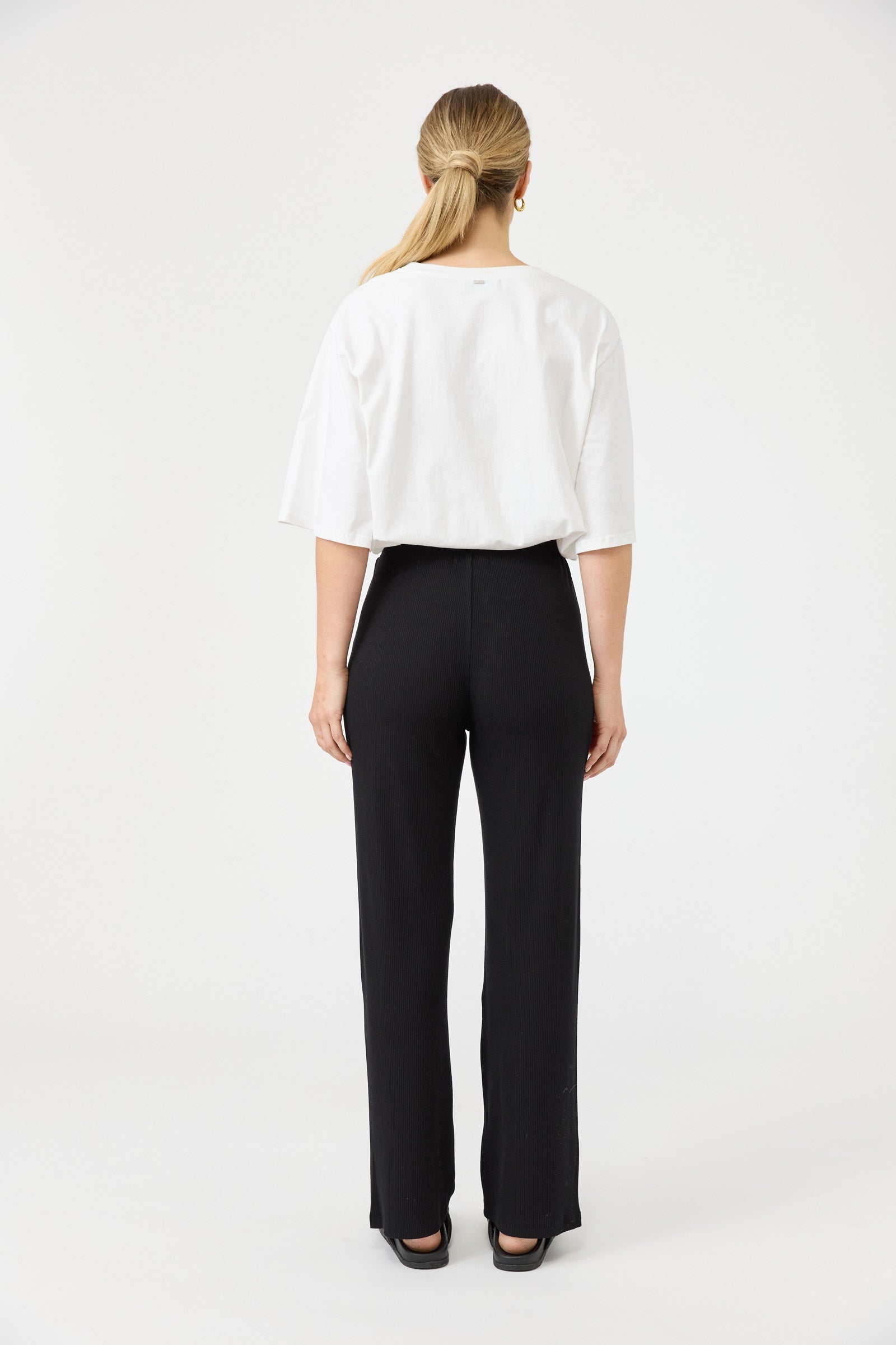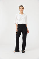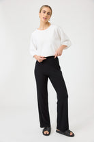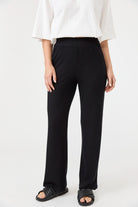 A chic substitute for sweatpants, the Studio Jersey Pant is ideal for casual days. Designed for easy wear, they boast a pull-on style, an elastic waist, a straight-leg silhouette, and ample stretch for optimal comfort. A blend of comfort and structure, these pants are essential when you want to kick back and de-stress. Coordinate them with a matching top or a plain t-shirt paired with a denim jacket.