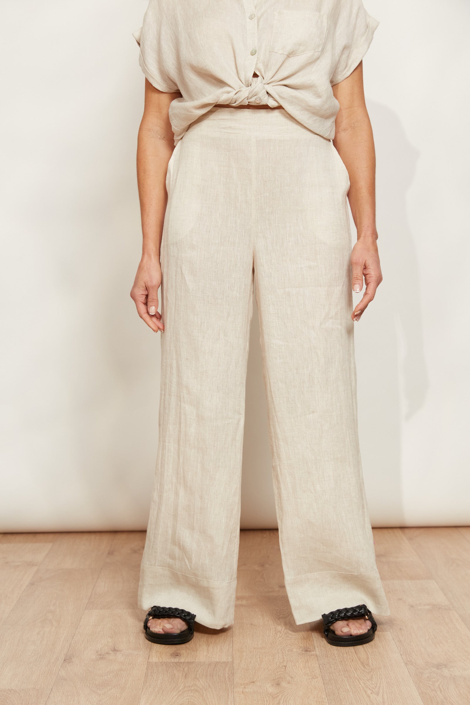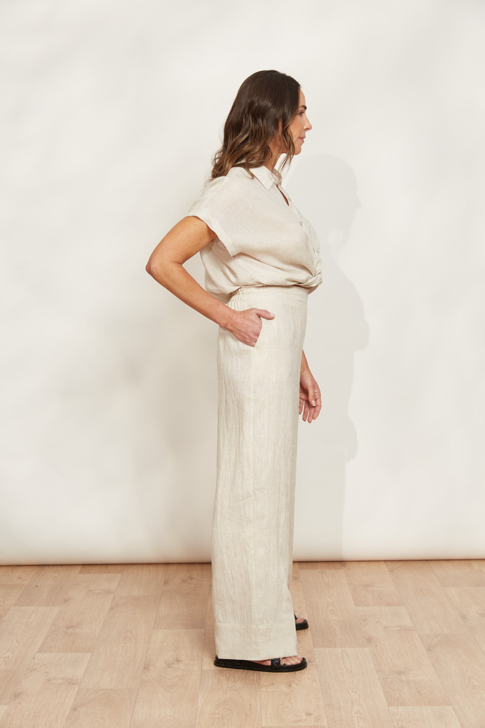 With a sleek, straight-leg design and a half-elastic waist, wearing the Studio Pant feels like a dream. These pants, made with a lightweight 100% linen composition, offer a timeless silhouette that will transcend seasons. Whether paired with a simple tank or t-shirt, these linen pants complement your favourite sandals or sneakers, creating a laid-back, off-duty look.