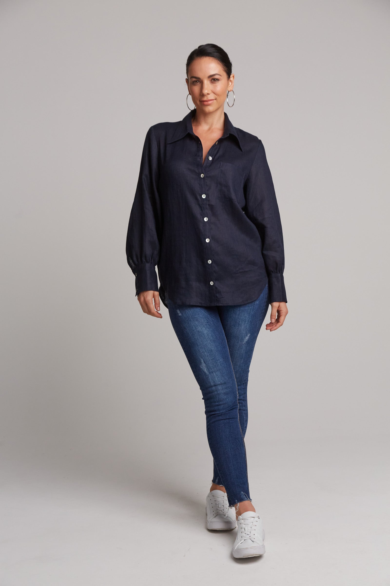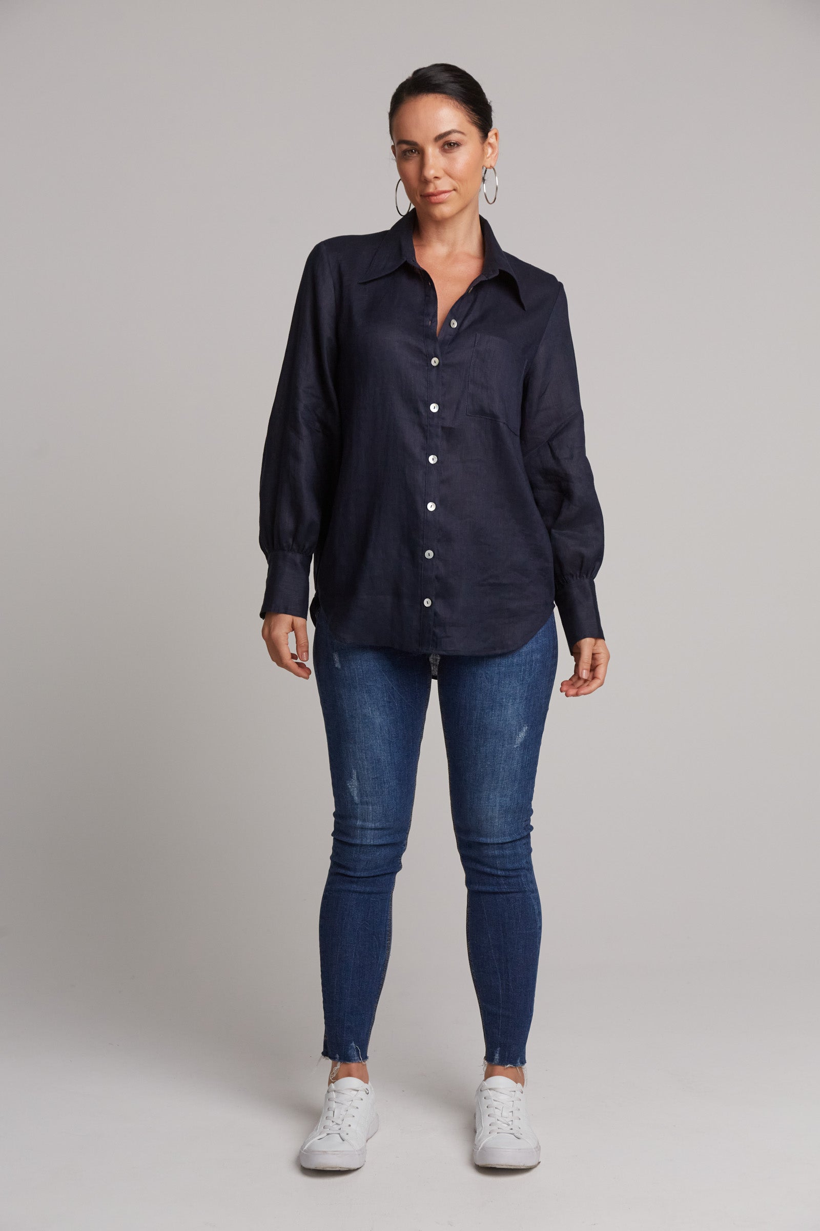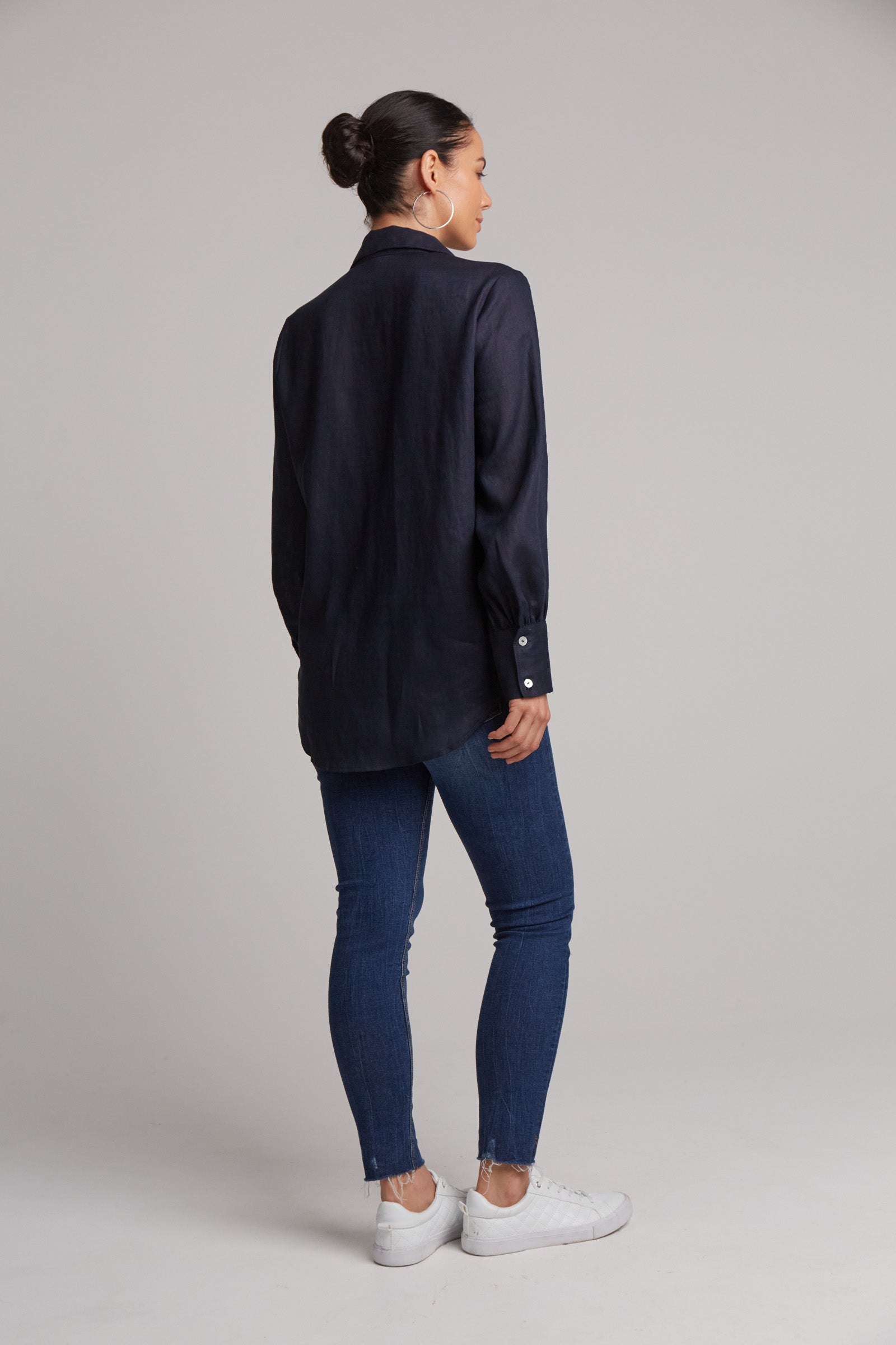 Opt for a smart look with the 100% linen Studio Shirt. It's perfect for the office or any casual occasion, featuring a collar and a high-low hem. Dress the Studio Shirt up with jeans, a cardigan and boots for casual Fridays at work, or wear it with sneakers for a more laid-back look.