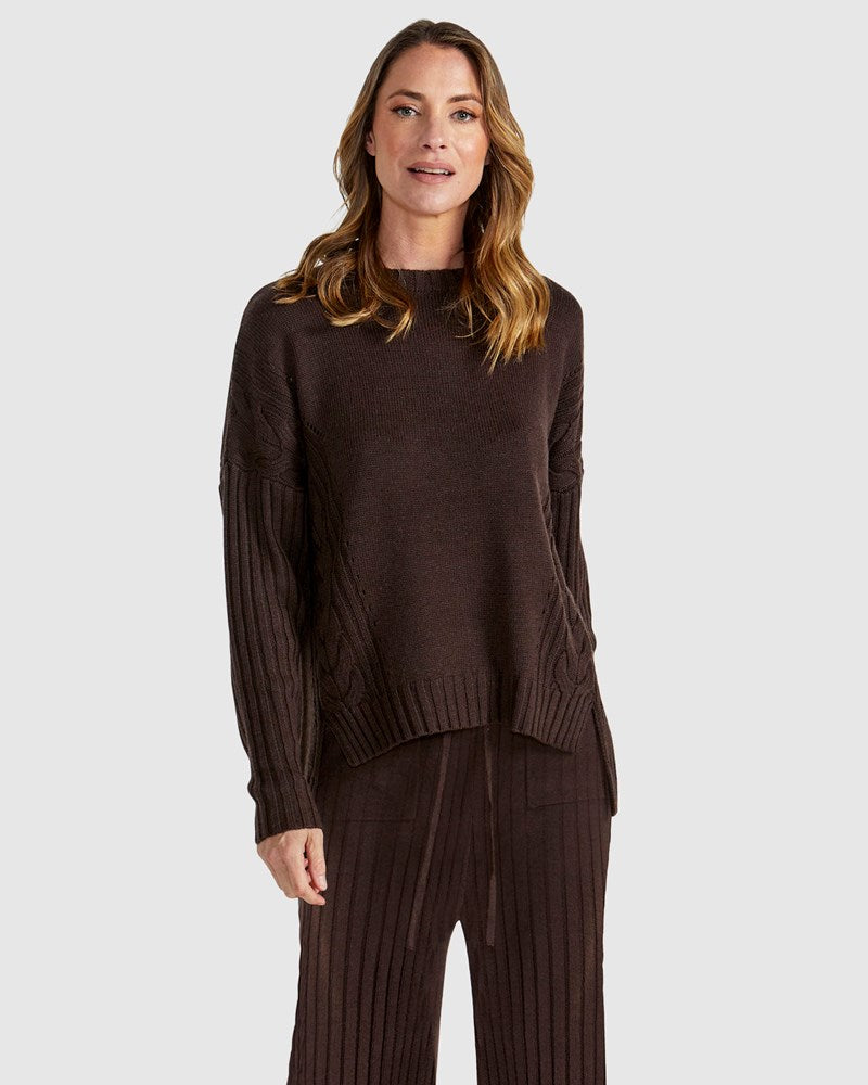 The Catalina Knit is a refined winter essential, featuring a round neckline and cable detail on the sleeves. Ribbing on the sleeves adds a touch of texture, while the soft knit fabric ensures comfort and chic elegance. This piece offers a sophisticated, regular fit ideal for winter days.