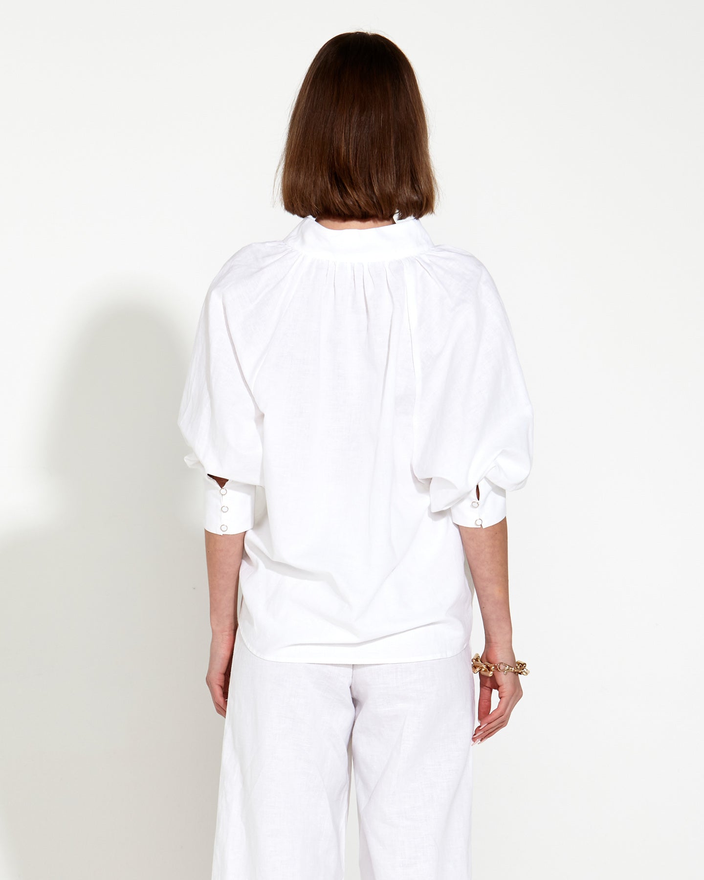 Heritage Linen Batwing Blouse - WHITE