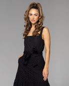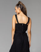 The fitted corset bodice, featuring boning, creates a structured and flattering silhouette that exudes sophistication. A shirred back panel with an exposed metal zip adds a touch of allure and ensures a secure fit. Internally adjustable straps provide personalized comfort and style. Embrace refined fashion effortlessly with the Higher Ground Corset Top, a chic addition to elevate any ensemble.