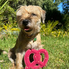 Peter the Iggy often sleeps like a pretzel with his long legs in a tangle. Peter the Pink Pretzel is made from buffalo suede, lined with jute, and filled with cotton rope to make it extra tough. 20cm x 15xm