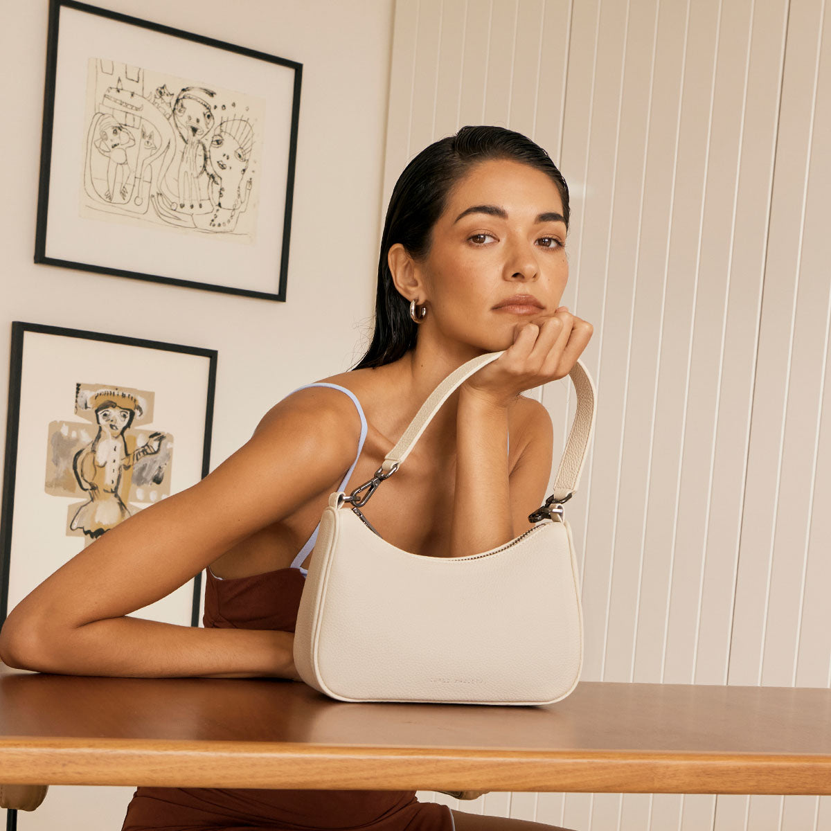 The 'Look Both Ways' bag will keep people guessing with her dual personality straps. Use the shorter shoulder strap for a dressier on-the-go look or go the longer web strap option to give off a more casual 'I don't have plans today' vibe.
