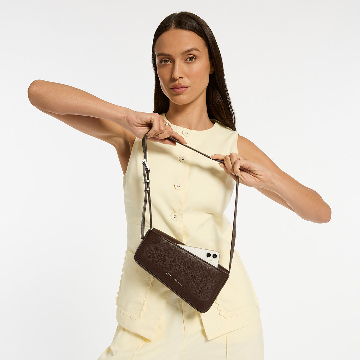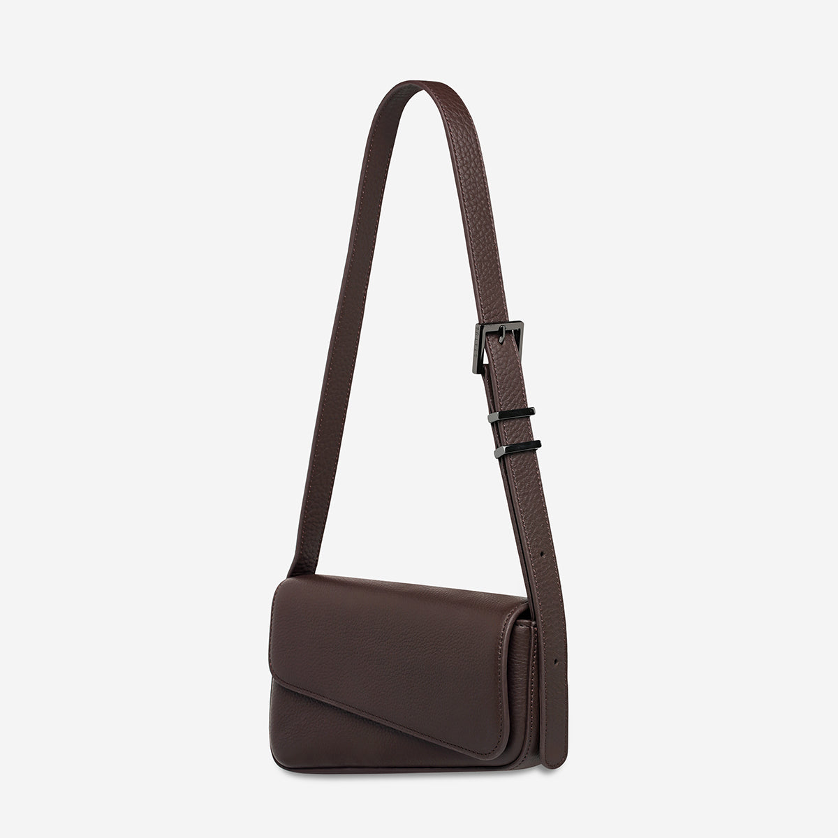 Enigmatic, young at heart, and complete with commitment issues... 'Overnight Obsession' is ready at a moment's notice. Perfectly asymmetrical and complete with branded hardware, longer shoulder strap, and back phone pocket for quick getaways.