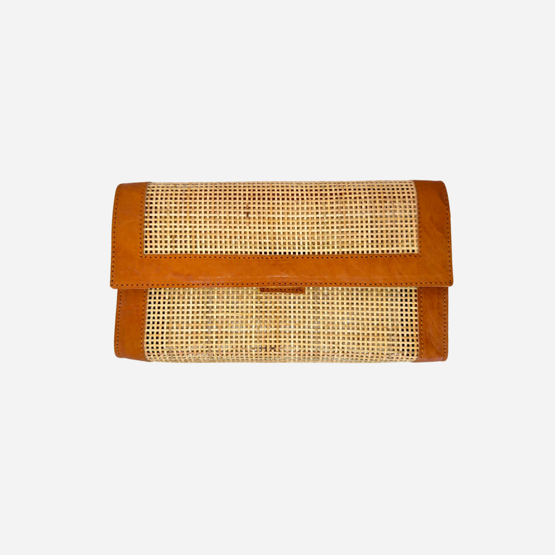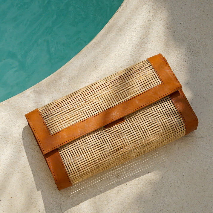 Upgrade your fashion game with our latest addition - the perfect night out clutch! Crafted from the finest rattan cane webbing material found in Indonesia and accented with leather trim for a touch of vintage charm, this compact clutch is the epitome of unique style. From casual dinner dates to glamorous parties, this versatile clutch will elevate any outfit with its effortless elegance. So why settle for ordinary when you can stand out with our one-of-a-kind accessory