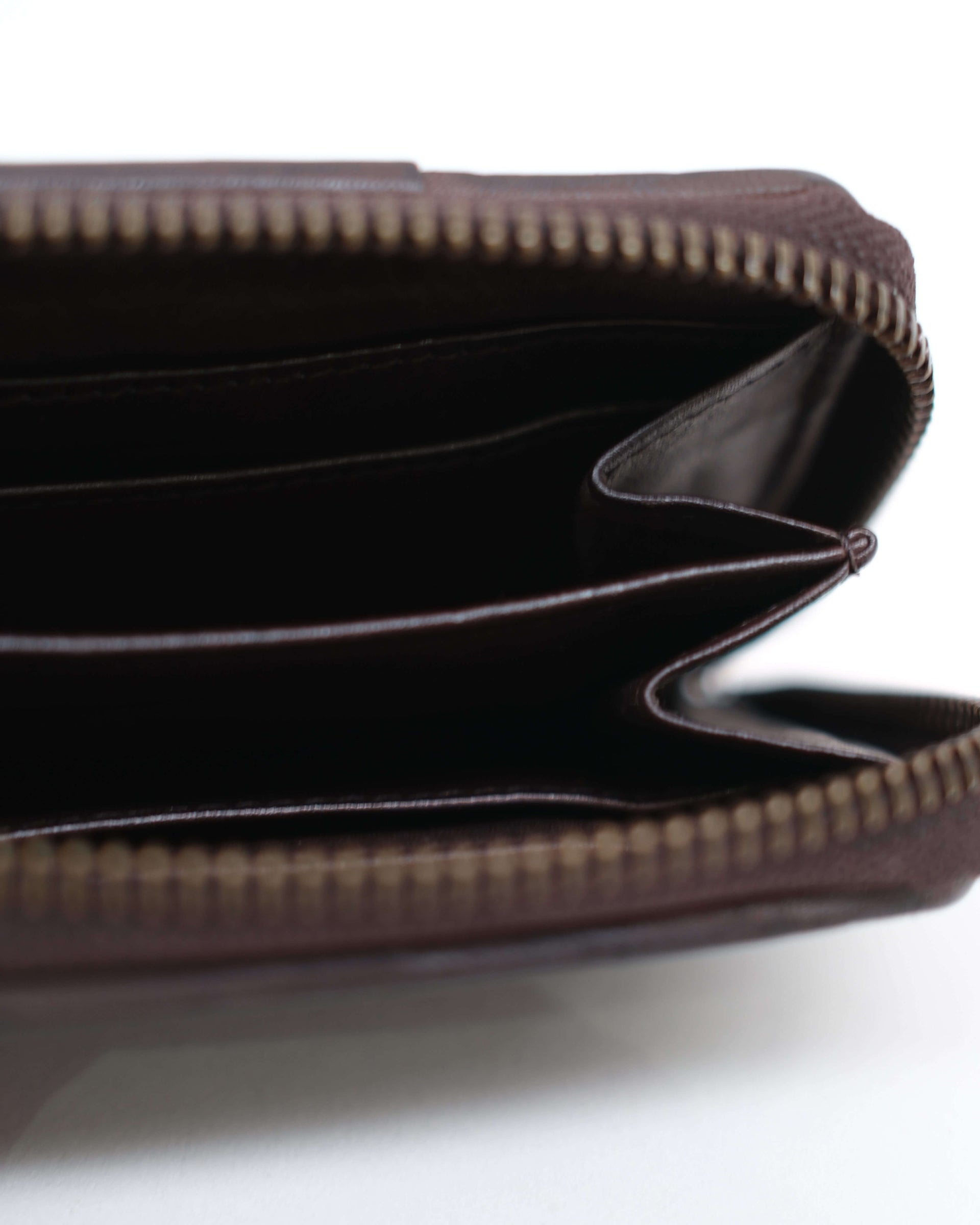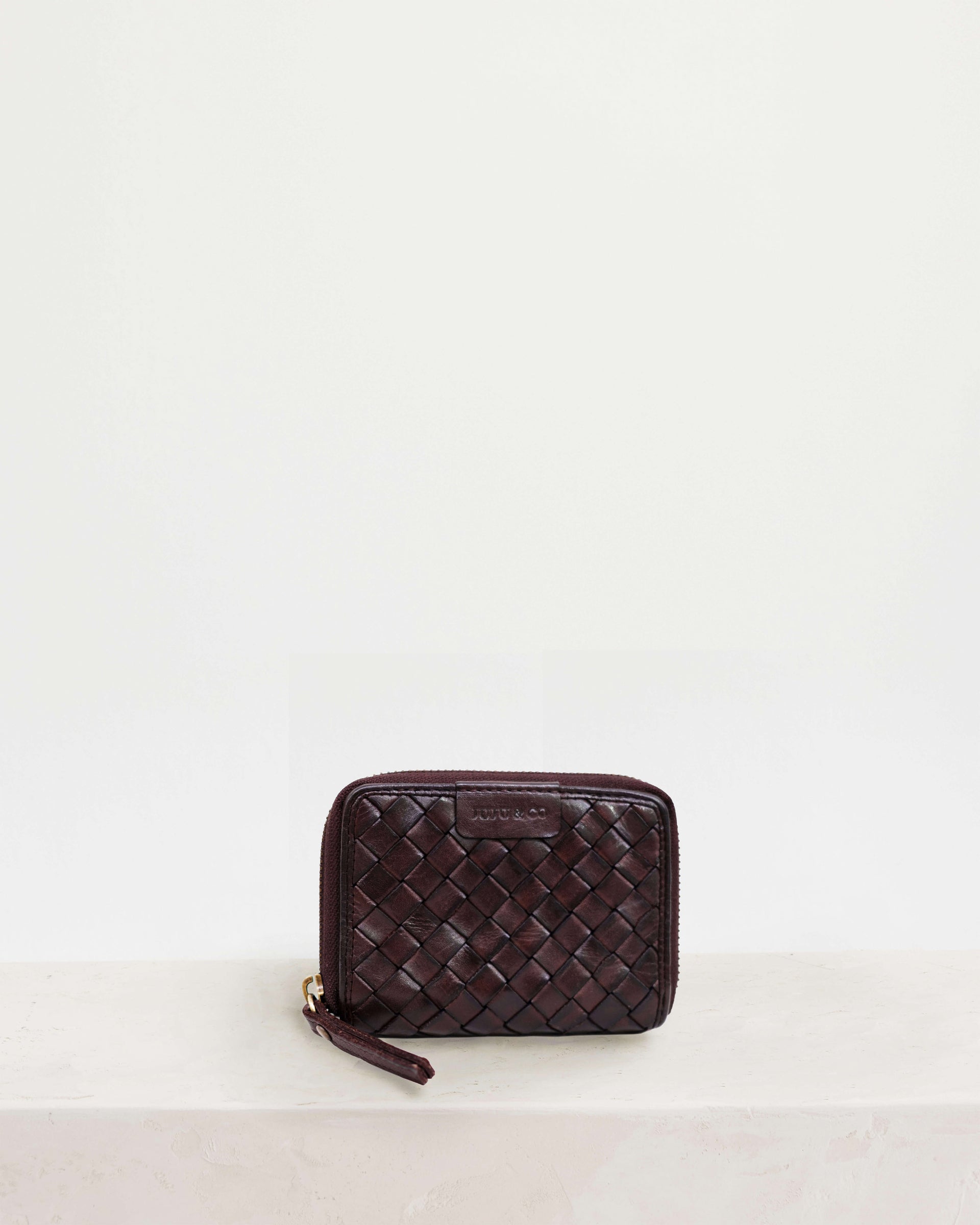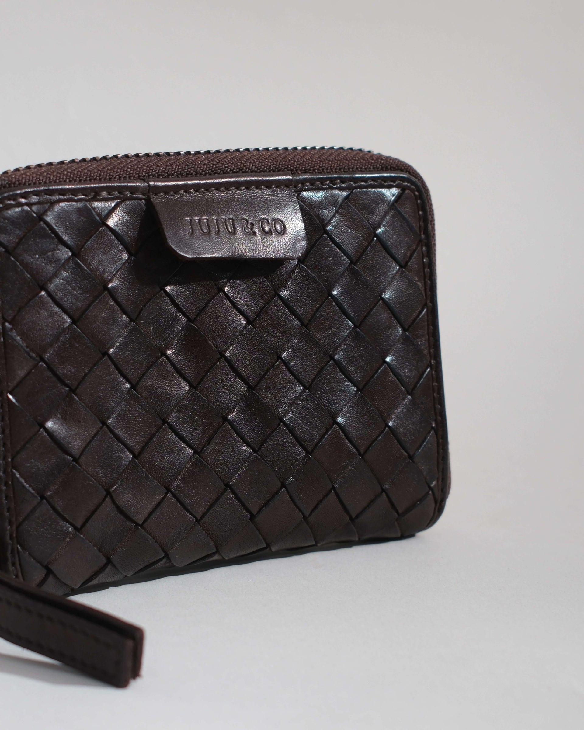 The Small Basque Wallet in Chocolate is a small zip wallet made from woven leather. Organise in style, with an all leather interior and a zip for security.