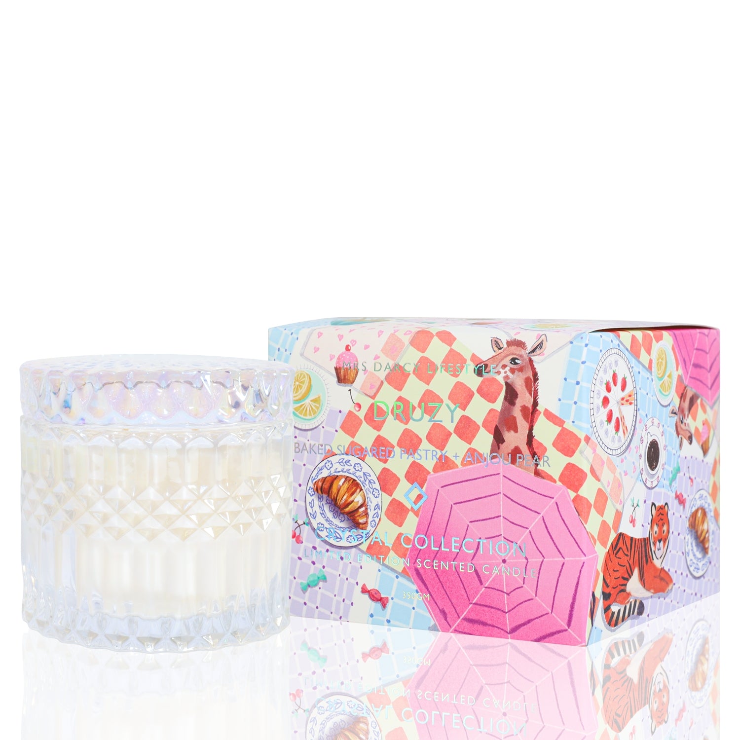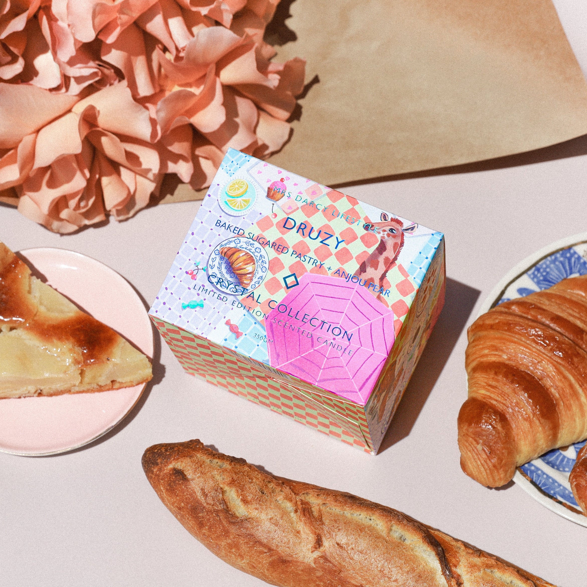 Layers of delicate pastry, zesty fruits, and freshly baked sugars sweeten the air in Druzy’s decadent fragrance to make hearts melt. Fresh out of the oven and ready to inspire, Baked Sugared Pastry delivers mouth-watering top notes of Sweet Orange, Cream, and Salt. A warm heart of Caramel, Pistachio, and Malt intertwines with grounding base notes of Vanilla Bean, Tonka Bean, and Sandalwood. Anjou Pear lightens up the mix with subtly sweet, juicy scent notes freshly picked from the tree. Discover the magic of our Crystal Collection: inspired by the beauty of precious stones and crystals. These candles are for lovers of both impeccable scents and distinct glassware. 350gm.