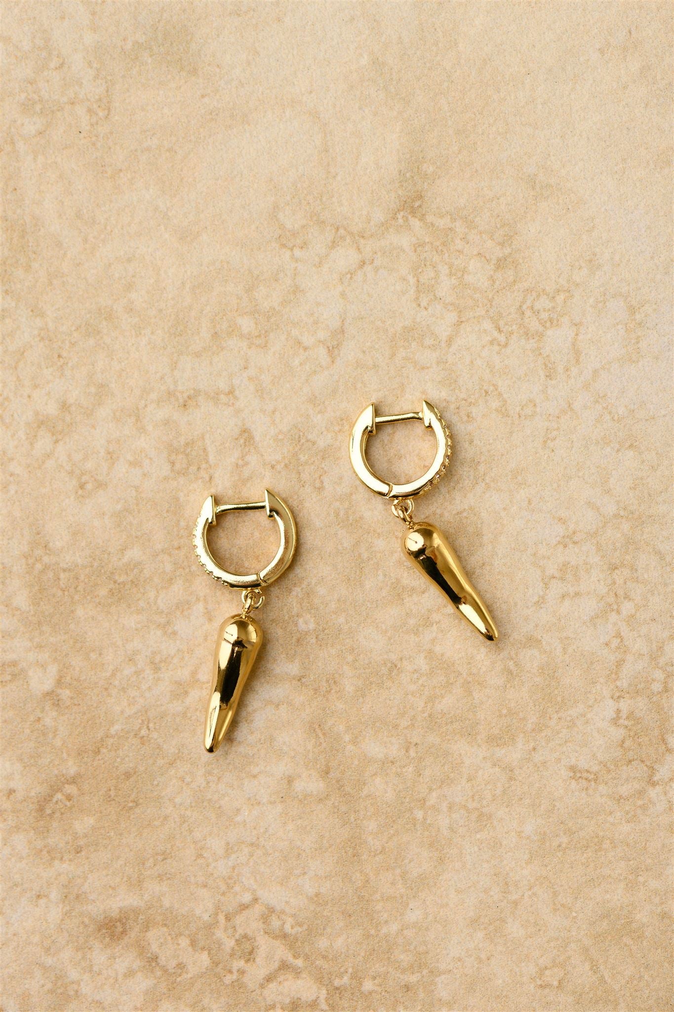• Add a little spice to your style with Oro! These charm earrings feature a golden chilli on a cubic zircon hoop, adding a playful twist to any outfit. Who says fashion can't be hot!