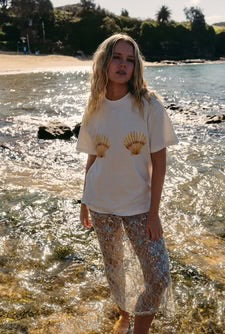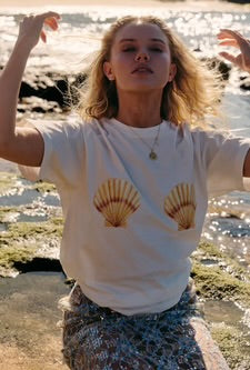 Introducing the Shelby Tee - the perfect tee for beach lovers! Made from organic cotton, this seashell-inspired top is not only stylish but also environmentally friendly. Put it on and feel the ocean vibes wherever you go.