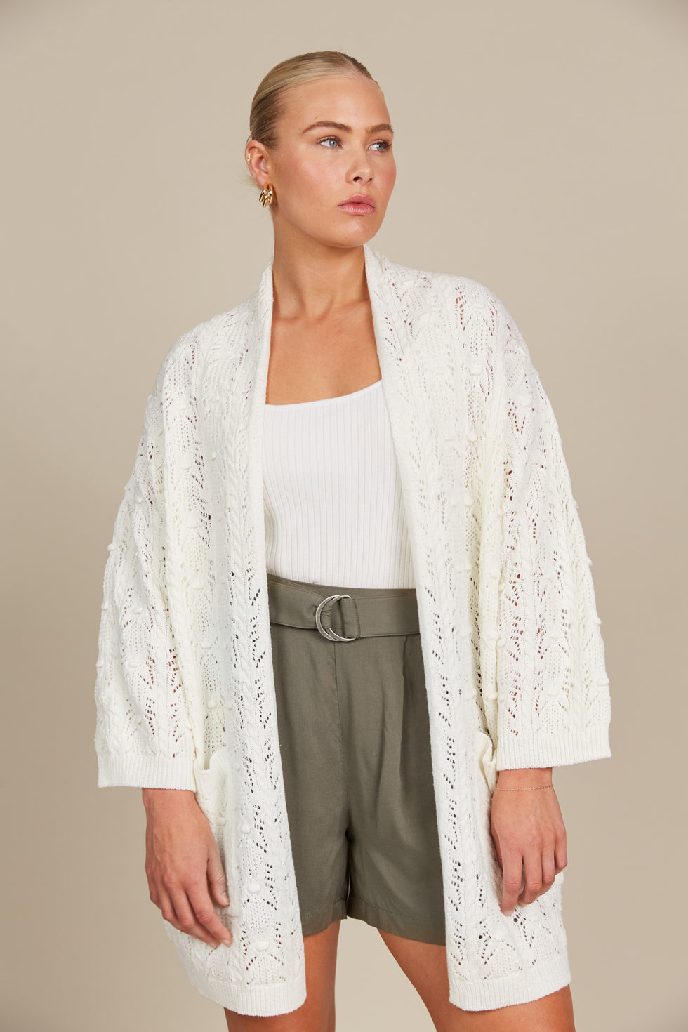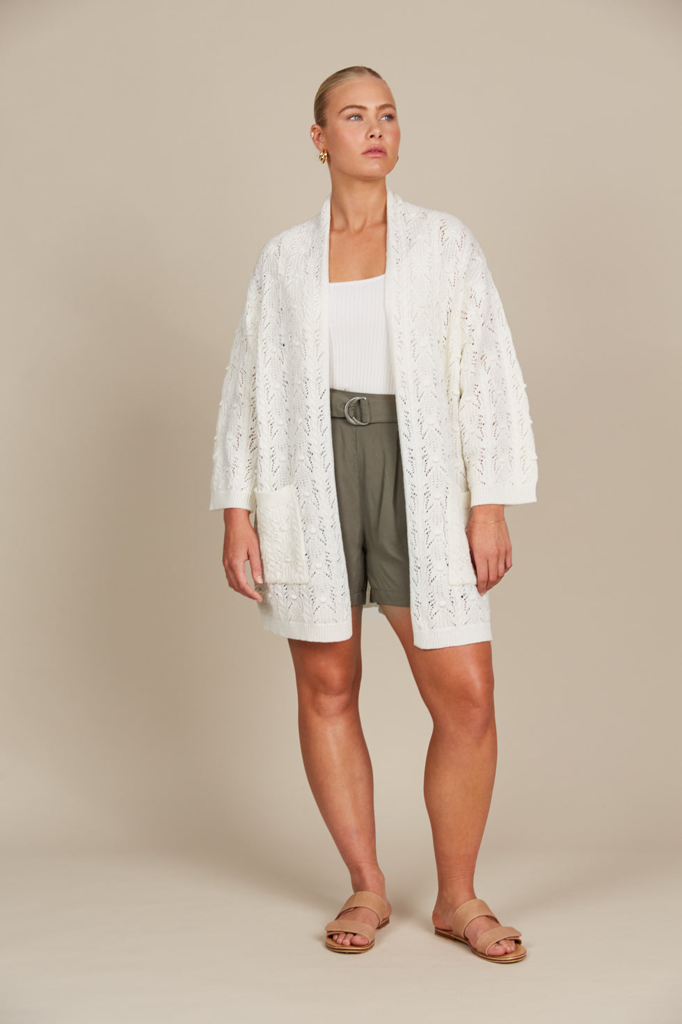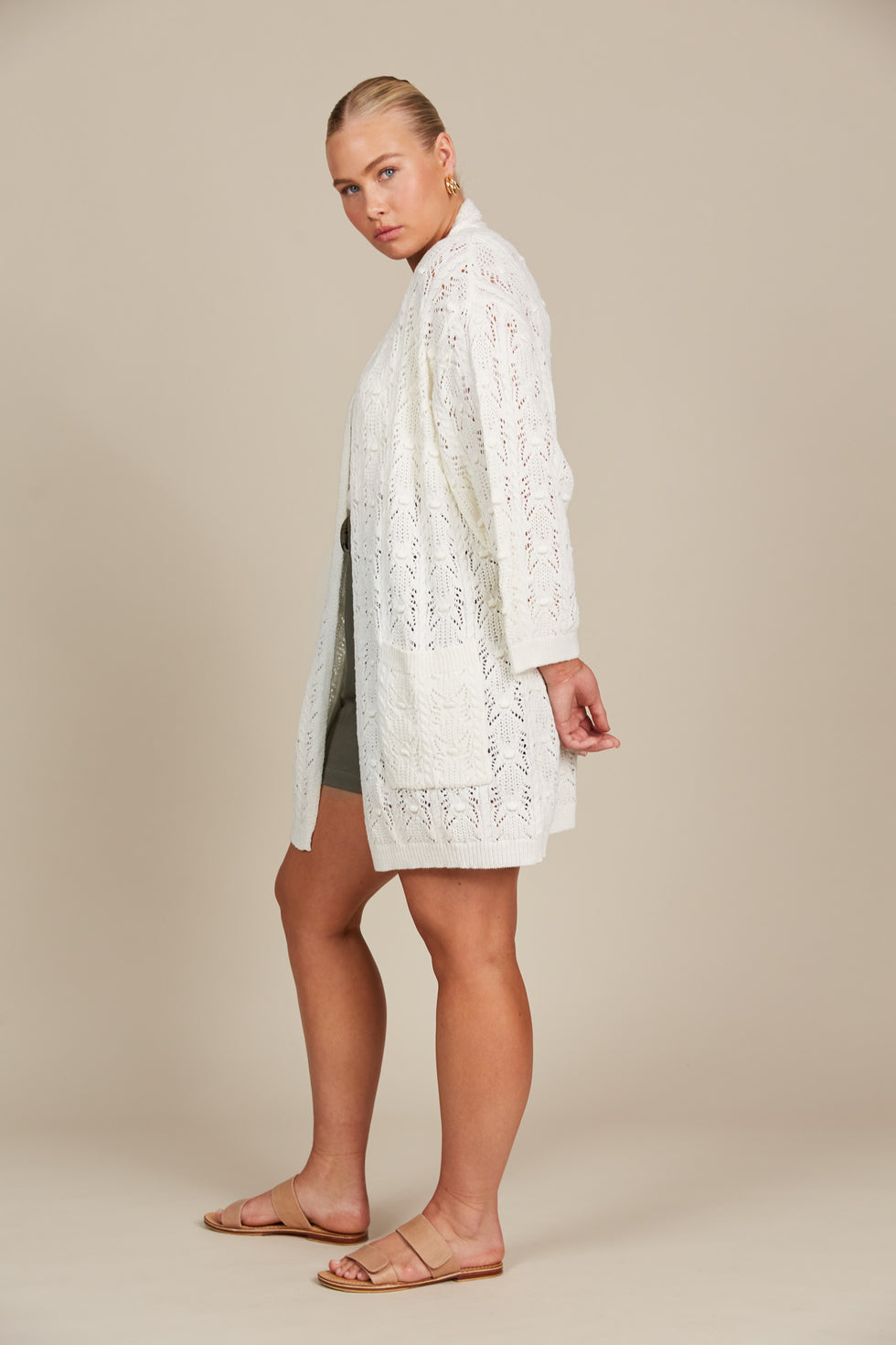 Wrap yourself in the comfort of the Sylvie Cardigan, made from a luxurious cotton blend. Its open-style design, long sleeves and knee-length silhouette are complemented by its relaxed fit, making this knit cardigan an excellent option for transeasonal wear. Style it for off-duty days with a tank or a tshirt and your favourite denim.