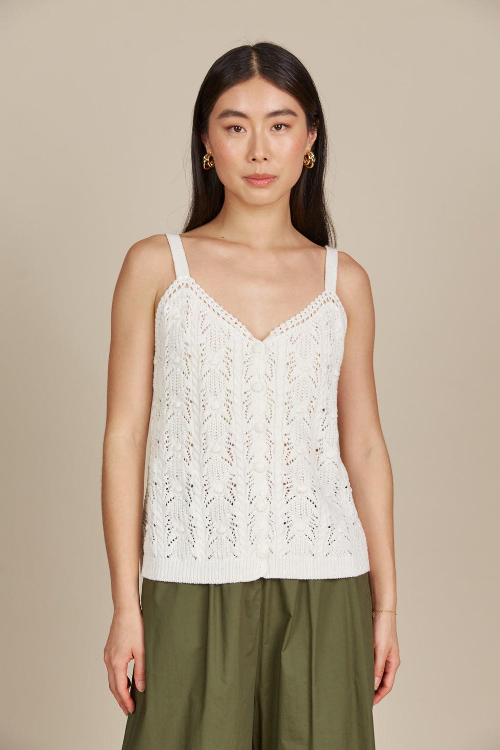 Beautifully woven, the Sylvie Tank will bring you into the warmer months. Refreshing your summer tops collection in a comfy cotton blend, it's perfect for daily wear. It features a sleeveless design, thin shoulder straps, a V-neck and a button-down front. Pair it with shorts or loose pants and sneakers for a laid-back, everyday look.