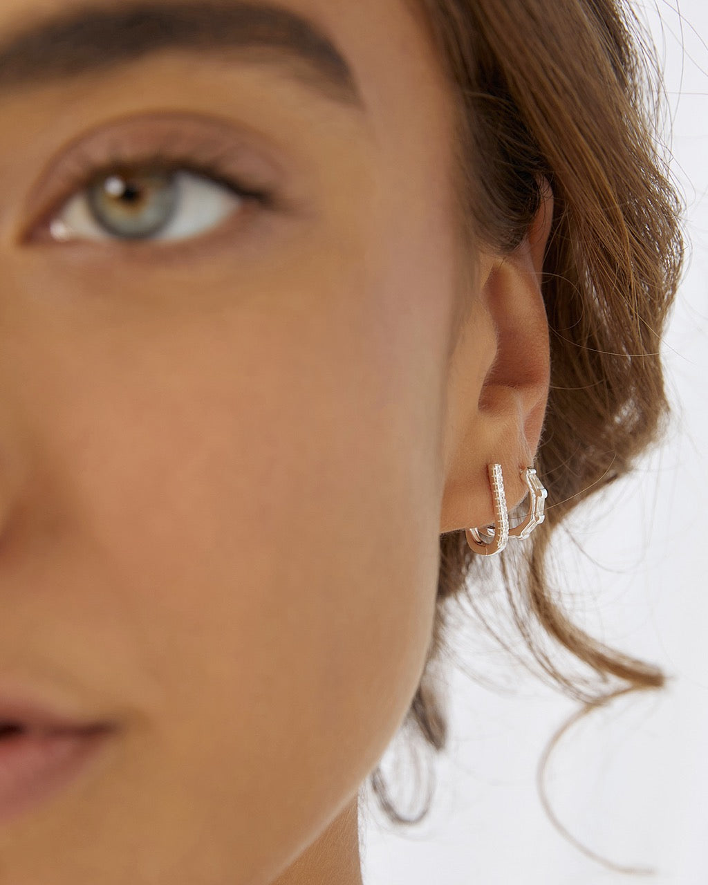Everyday style made glam with our perfectly cute Holi Huggies. Featuring shimmering stones on a classic huggie, these beauties will make you shine wherever you go!