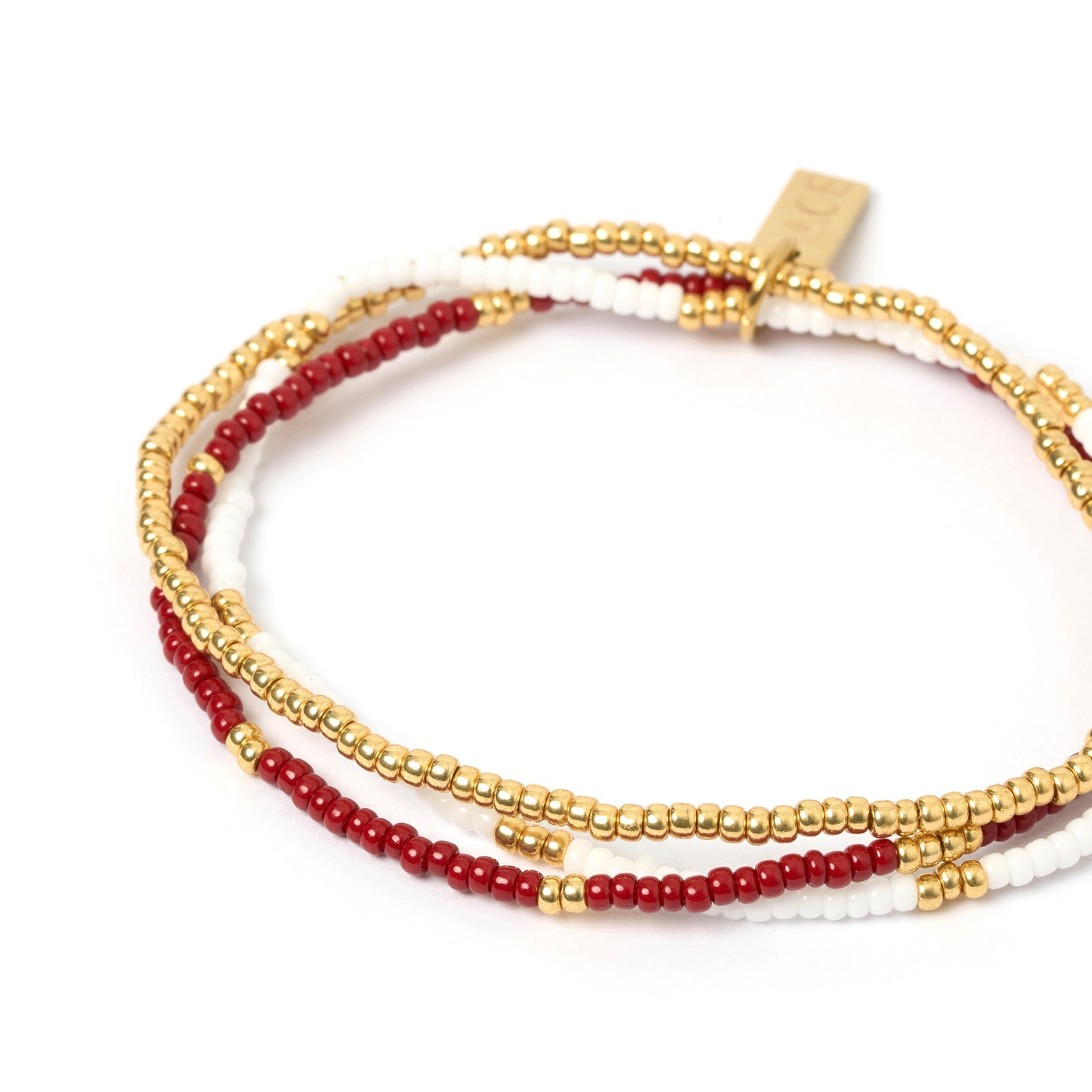 Stack them up high with our trendy Sunny Bracelet Set! Featuring 3 beaded beauties, one gold, one white and one burgundy, this set helps you mix it up and more importantly, make it fun!