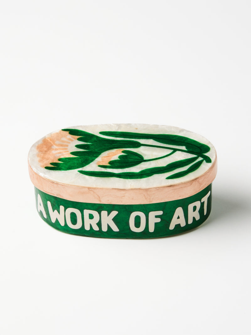 A modern floral motif washes across this generously sized Capiz shell box, creating a luminous vessel for treasured objects. Designed in Sydney and meticulously crafted by skilled artisans in the Philippines, each piece celebrates the natural iridescence of the shell through thoughtful pattern and colour. So much so we inscribed "work of art" on the side. Perfect for storing jewellery and mementos.
