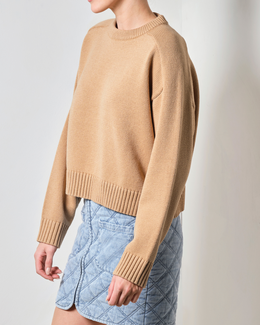 Embrace winter warmth with the Seville knit jumper, your essential companion for the season. Featuring a classic crew neckline and rib cuffs, this jumper is poised to become a favorite in your wardrobe. It effortlessly combines the cozy embrace of a winter knit with a plush, airy feel.