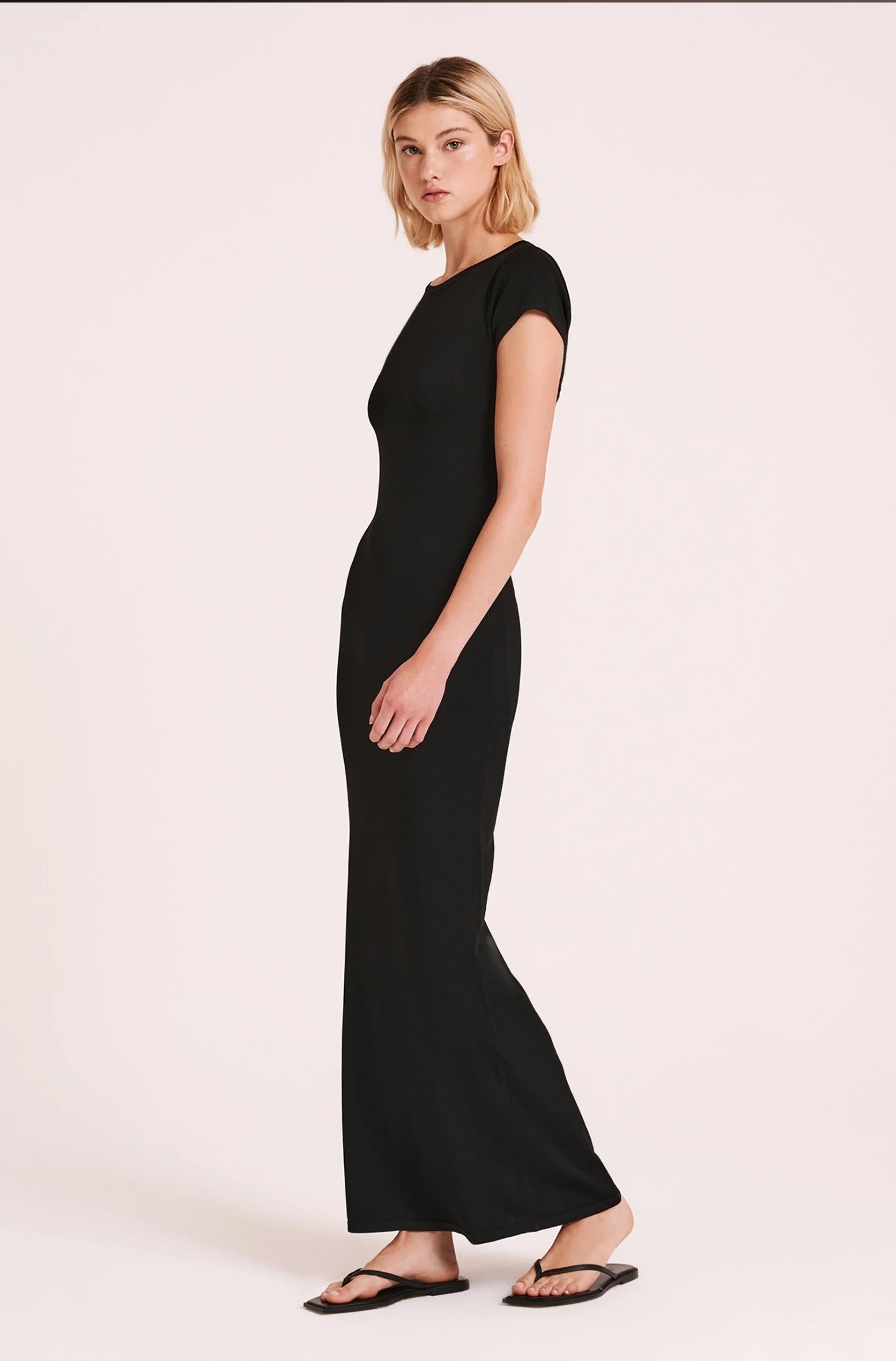 The Nabila Knit Dress is made from a lightweight viscose blend yarn which has a dry hand feel. The silhouette is slim fitting with length finishing above the ankles. Features include a crew neckline and short cap sleeves. This dress comes with a removable slip lining.
